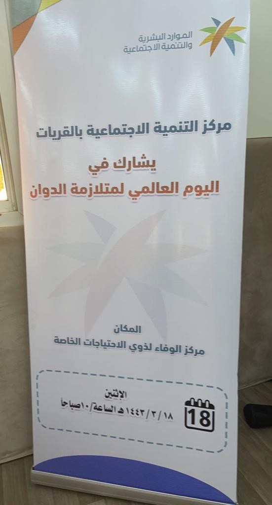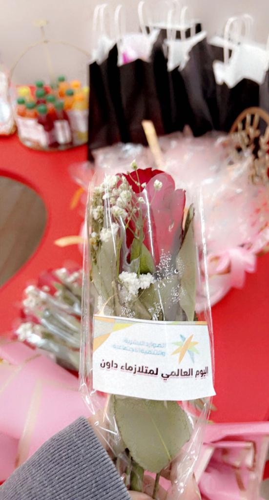 أقام مركز التنميه الاجتماعيه بمحافظة القريات بتفعيل اليوم العالمي لمتلازمة داون صباح يوم الاثنين الموافق ١٨ / ٨/ ١٤٤٣ هـ بالتعاون مع مركز الوفاءلذوي الاحتياجات الخاصة بالقريات حيث اقيم بمقر مركز الوفاء وتضمن توزيع الهدايا على الأطفال بالإضافةالى توزيع الهدايا على كل من المدرسات والاخصائيات العاملات بالمركز لجهودهن المبذوله في تدريب الاطفال من الناحية العقليه والجسدية وإقامة بعض الفقرات الترفيهيه والأناشيد والمشاركات الفردية للاطفال.