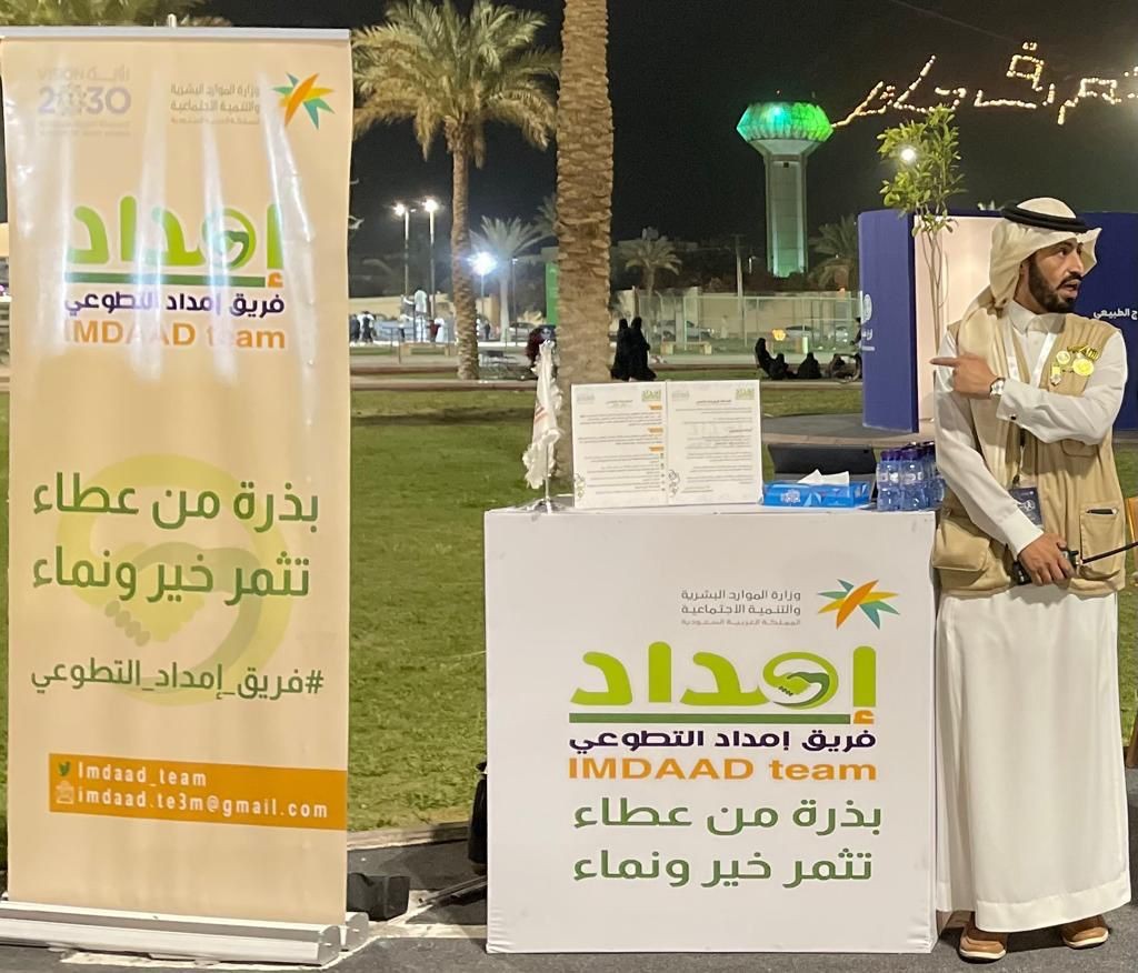 وعلى مدى أسبوعين اقام فريق إمداد التطوعي الركن التثقيفي لنشر ثقافة التطوع في المنطقة ، ورفع الوعي بالعمل التطوعي واهمية و التسجيل في المنصة الوطنية للعمل التطوعي واطلاع الجمهور على المبادرات التطوعية التي يمكنهم الالتحاق بها.