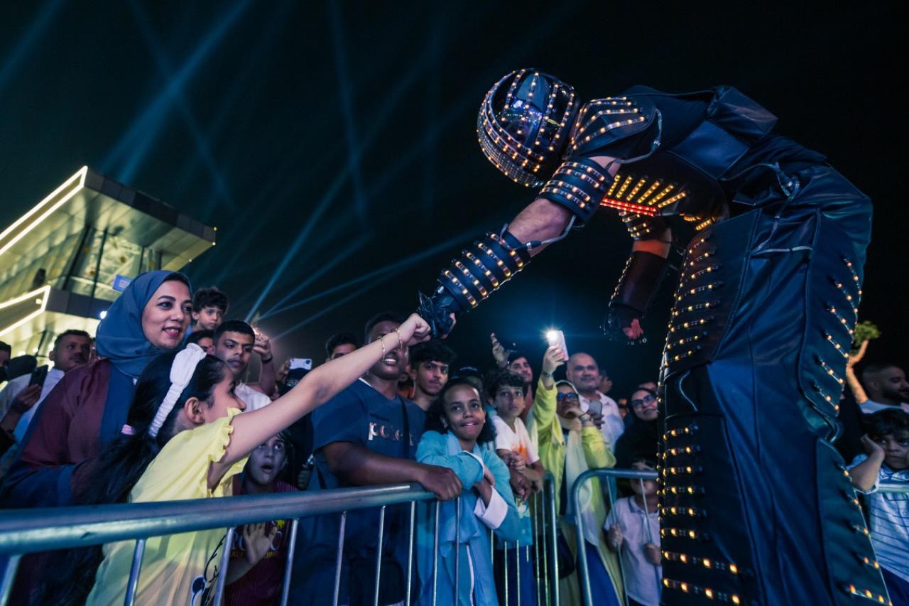 كما لفت أنظار الجمهور المسرح المائي، والمسيرات الاستعراضية المتحركة التي تقدم فقراتها على امتداد ساحات المنطقة؛ حيث حظيت هذه العروض الحية باهتمام كبير من مختلف الفئات العمربة للاستمتاع بالفقرات المقدمة؛ والإصطفاف حولها لتصويرها والتفاعل معها وسط مشاركة الأطفال حالة السعادة والفرح التي يعيشونها مع كل عرض.