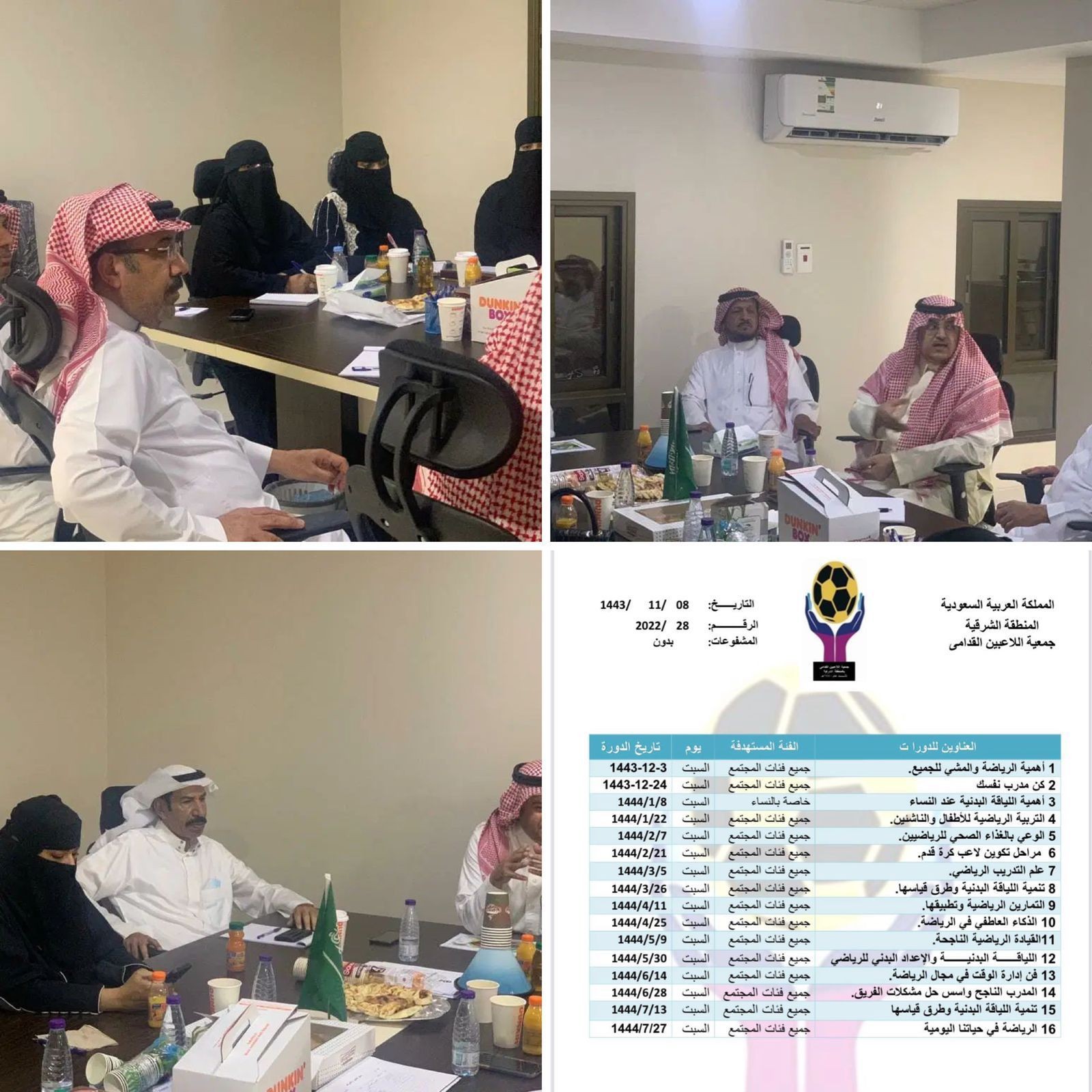 بعد موافقة وزارة الرياضة وضمن البرامج التي ستقدمها جمعية اللاعبين القدامى بالمنطقة الشرقية تقدم المدربة المستشارة سناء الخالدي عدد 16 دورة رياضية التي سيستفيد منها الجميع التي تهم جميع فئات المجتمع منها دورة خاصة للنساء والتي ستكون عن طريق زوم ( Zoom ) وستبدأ اول الدورات في 3-12-1443هـ وآخر دورة ستقام في 27-7-1444هـ