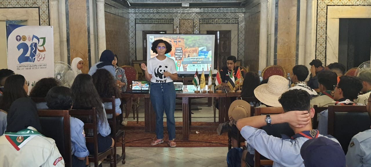 وتضمن حفل افتتاح الندوة الخطابي التي سيكون موضوعها " التغييرات المناخية وقيادة الاعمال المجتمعية" جلسة تعريفية بالندوة، ثم ألقيت عددٍ من الكلمات تناوب على إلقائها قائد اللقاء منتصر بن مبروك، ونائب مُدير الإقليم الكشفي العربي رفعت السباعي، ومُدير البرامج بالمكتب الكشفي العربي نسيم ضناوي، ورئيس لجنة المستشارين الشباب أحمد الكمياني.