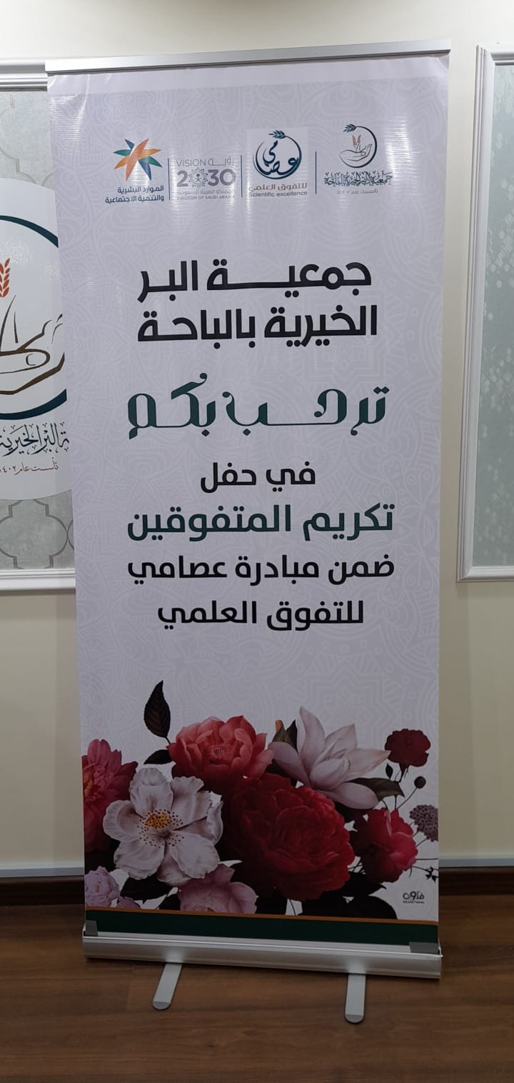 كرمت جمعية البر الخيرية في منطقة الباحة الطلاب والطالبات المتفوقين ممن ترعاهم الجمعية من خلال مبادرة اطلقتها تحت شعار "عصامي للتفوق العلمي" والمقامة برعاية مدير عام وزارة الموارد البشريه والتنمية الاجتماعية في منطقة الباحة شايق بن محمد الشايق