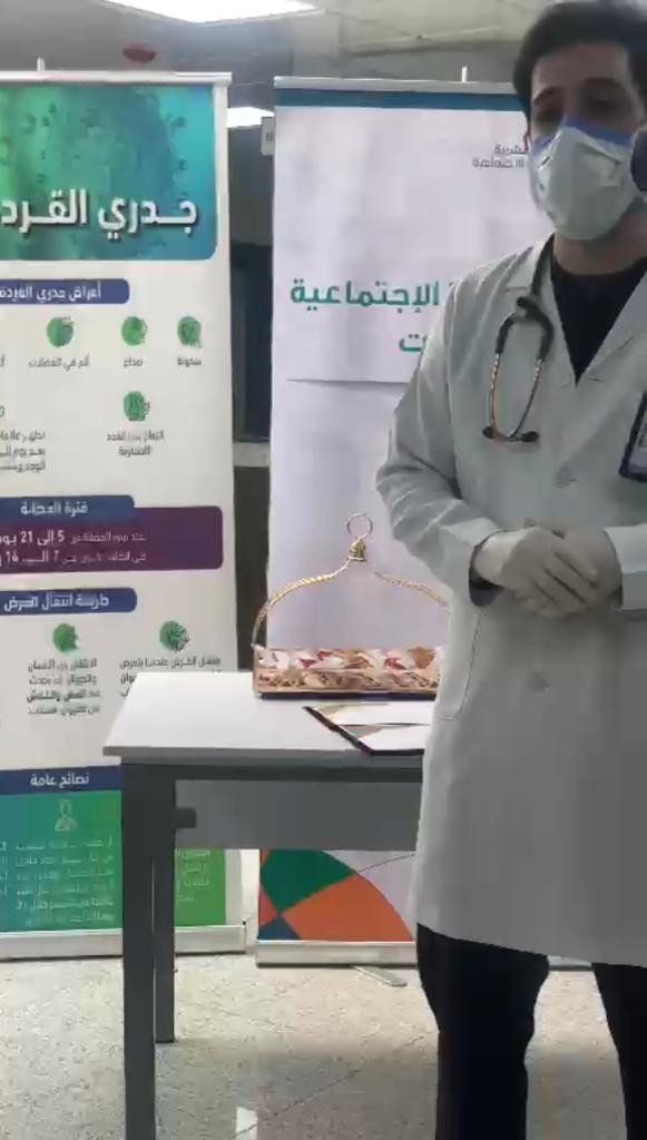 أقام مركز التنميه الاجتماعية بالقريات بالتعاون مع صحة القريات اليوم الثلاثاء الموافق ١٤٤٤/١/٢٥هـ محاضره بعنوان (جدري القرود)بمقر مستوصف الحميدية
