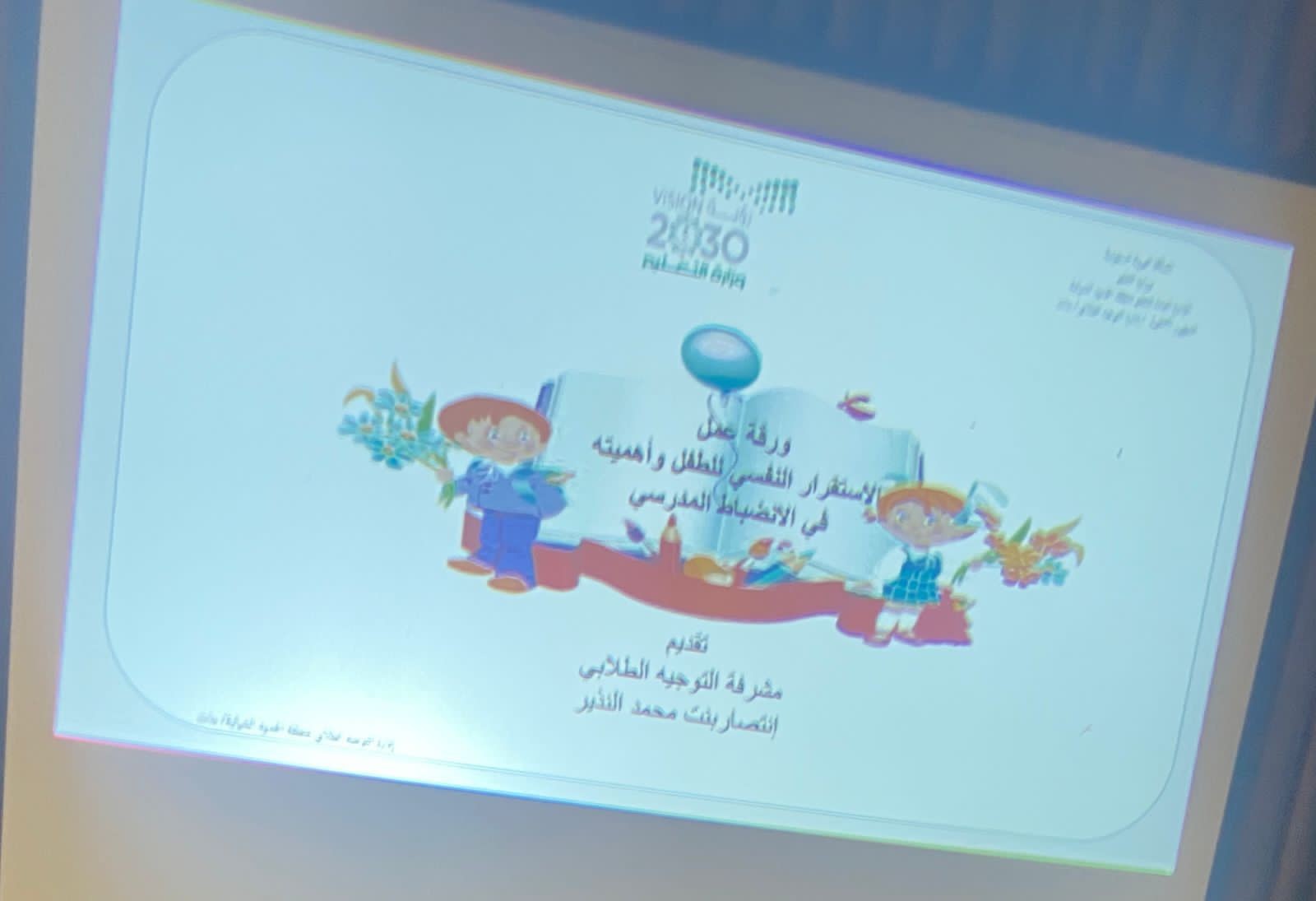 بمشاركة عدة إدارات منها إدارة التوجيه والإرشاد حيث قدمت أ/ انتصار النذير ورقة عمل بعنوان