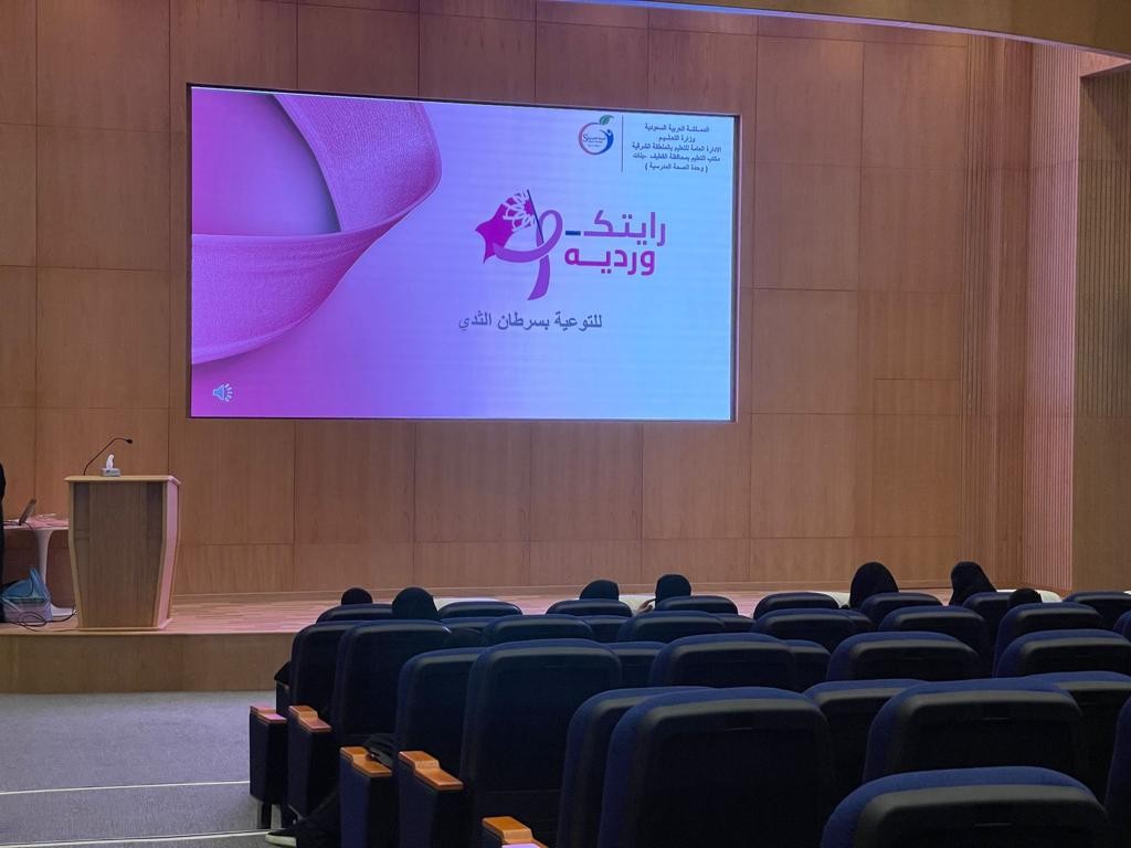 نظمت إدارة الصحة المدرسية بتعليم المنطقة الشرقية و بالشراكة مع وزارة الصحة برنامجا ً توعويا ً عن (مخاطر سرطان الثدي ) والذي انطلق تحت شعار ( رايتك وردية ) وذلك بالتزامن  مع الشهر العالمي لسرطان الثدي في مقر مسرح الإدارة العامة للتعليم .