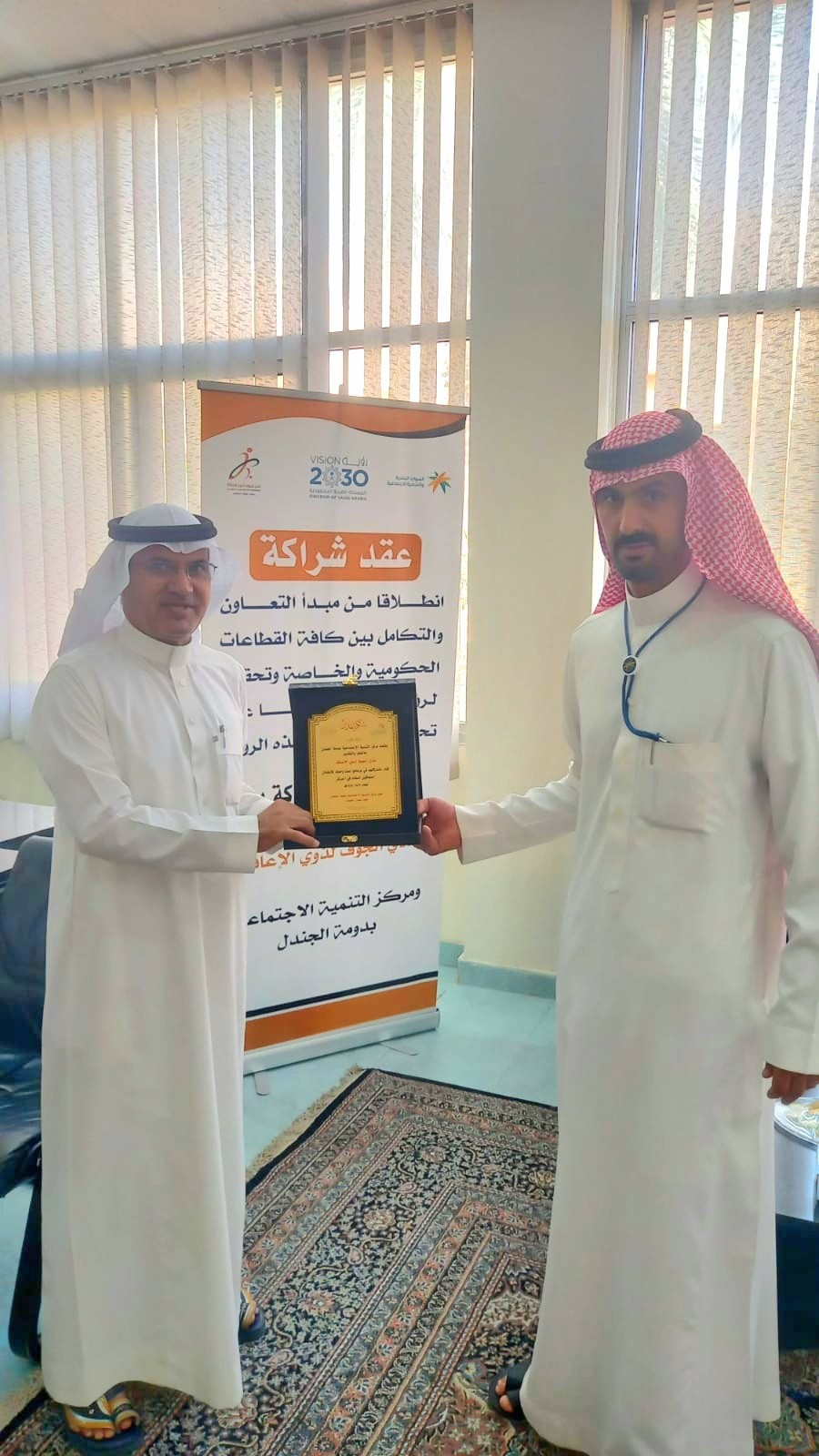 مركز التنمية بدومة الجندل يوقع عقد شراكه مع نادي الجوف للاشخاص ذوي الاعاقه .