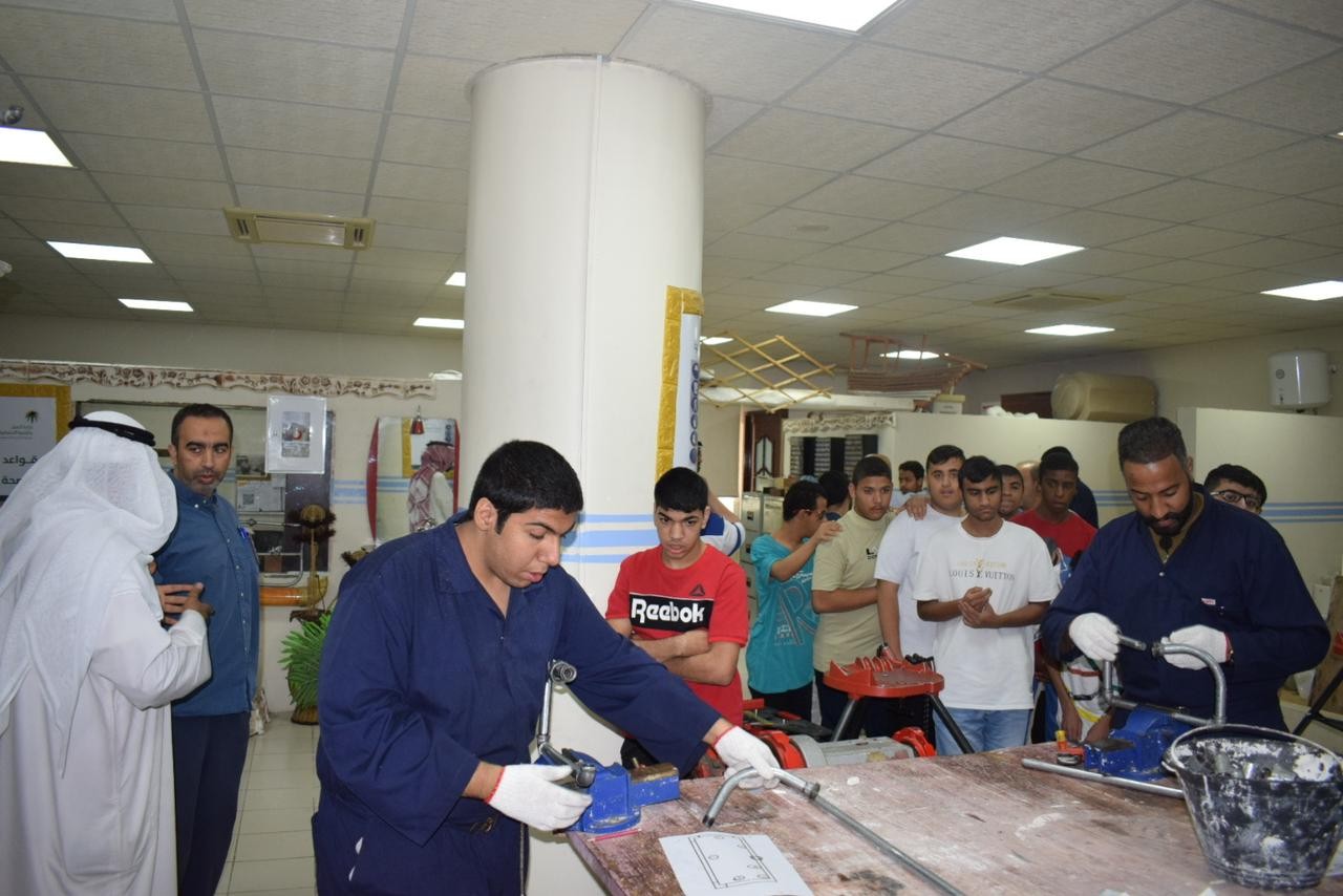 وقد قام رئيس القسم المهني عبدالمنعم المهنا ونائبه محمد النغموش بأخذ جولة بالطلاب لجميع الاقسم وهي النجارة والحاسب الالي والكهرباء والتمديدات الصحية والزراعة وتم شرح كامل لكل قسم ومايتطلبه من شروط للقبول فيه .