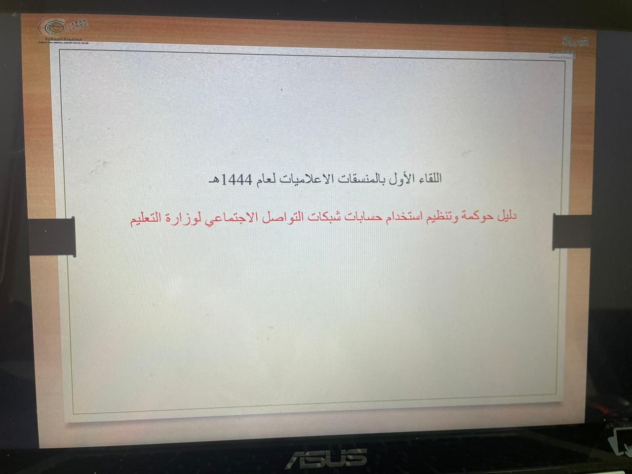 هدف اللقاء إلى الاطلاع على دليل حوكمة وتنظيم استخدام حسابات شبكات التواصل الاجتماعي لوزارة التعليم للمستجدات من المنسقات في الإعلام التربوي من خلال توضيـح الإجراءات التقنيـة والمهنيـة فـي إنشـاء وإدارة حسـابات شـبكات التواصـل الاجتماعي لـوزارة التعليـم وتحديـد مسـؤولياتها التنظيميـة، وتفعيل المتابعة ومراقبة الأداء للقائمين على الحسابات والمحاسبة عليها، ومتابعة ترميز الروضات في الإعلام حسب دليل الترميز، وآلية متابعة الروضات في شبكات التواصل الاجتماعي ( تويتر- انستقرام - سناب شات - فيسبوك- يوتيوب )
