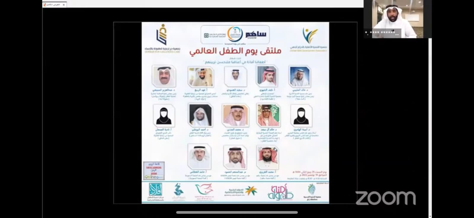 وادار الدكتور سعيد العمودي الإعلامي المتخصص في مجال الاسرة والطفولة اللقاء باحترافية، وتحدث كلا من الدكتور خالد الحليبي مدير عام جمعية التنمية الاسرية ورئيس مجلس ادارة جمعية كيان موهبة حول "كنت طفلًا"، وتطرق فهد الربيع المدير التنفيذي لجمعية درر لرعاية الطفولة الى "شركاء التربية"، وأبرز عبدالعزيز السبيعي رئيس المنظمة العالمية لحماية الطفل في بروكسل أهمية الـ"طفولة أمنة "، واستعرضت الدكتور أمينة الهاجري أستاذ علم النفس بجامعة البحرين سابقا  علم "الامان الاسري للطفل"، وتحدث الدكتور خالد آل سعد أستاذ علم الصحة المشارك عن "الهندسة النفسية الاجتماعية في بناء شخصية الطفل"، وعقب ذلك تحدث الدكتور محمد المدني مدرب تحفيزي في تعزيز القدرات حول "حقوق الطفل" والدكتور أحمد البو علي مدير مركز فلاذ لتنمية الطفل عن" أطفال اليوم.. قادة المستقبل".