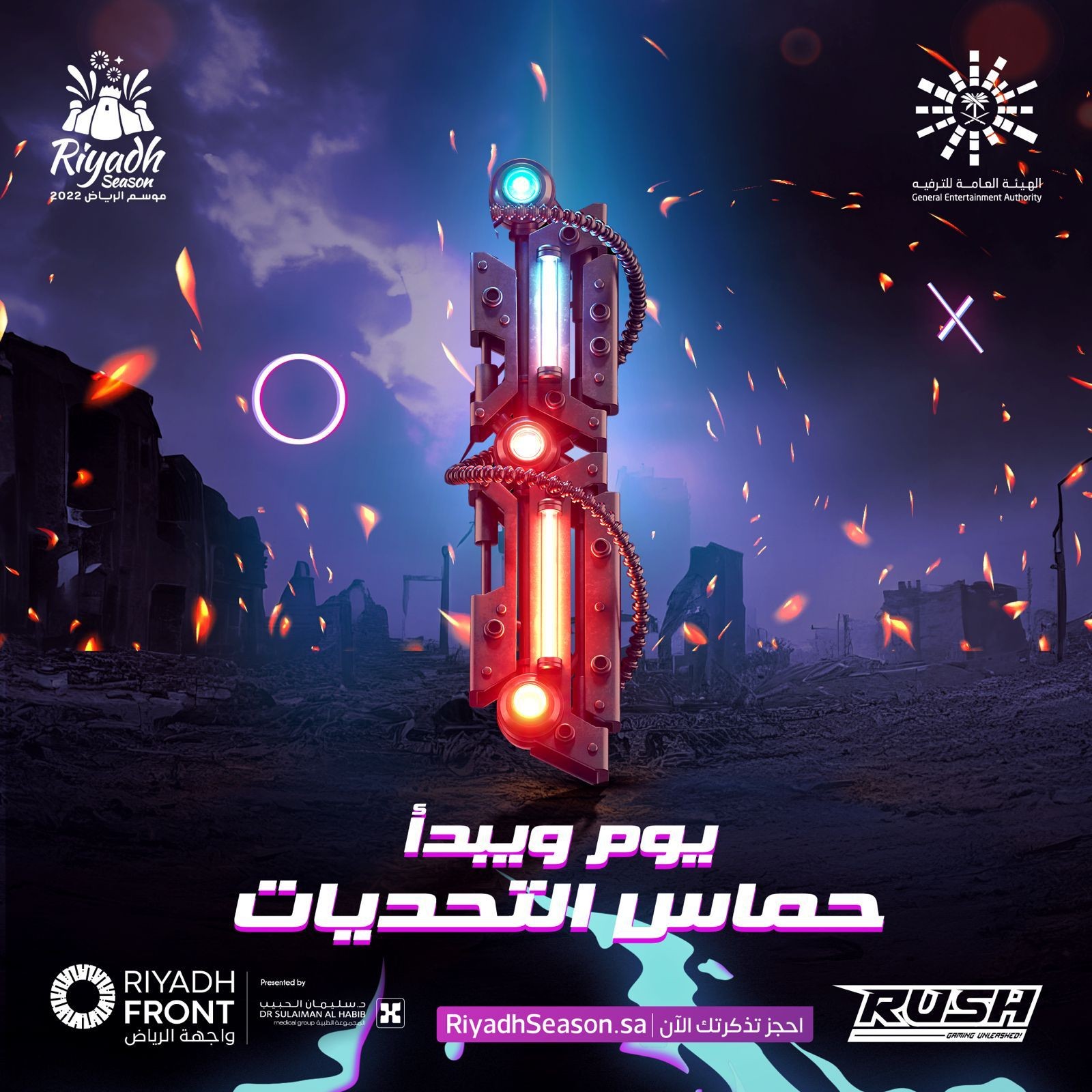 ينطلق غدًا السبت الـ 26 من نوفمبر ضمن فعاليات موسم الرياض 2022 مهرجان RUSH في منطقة واجهة الرياض إحدى مناطق الموسم الترفيهية الذي يُعد الأبرز والأكبر إقليميًّا للقيمرز في مجال الألعاب الإلكترونية والرقمية.