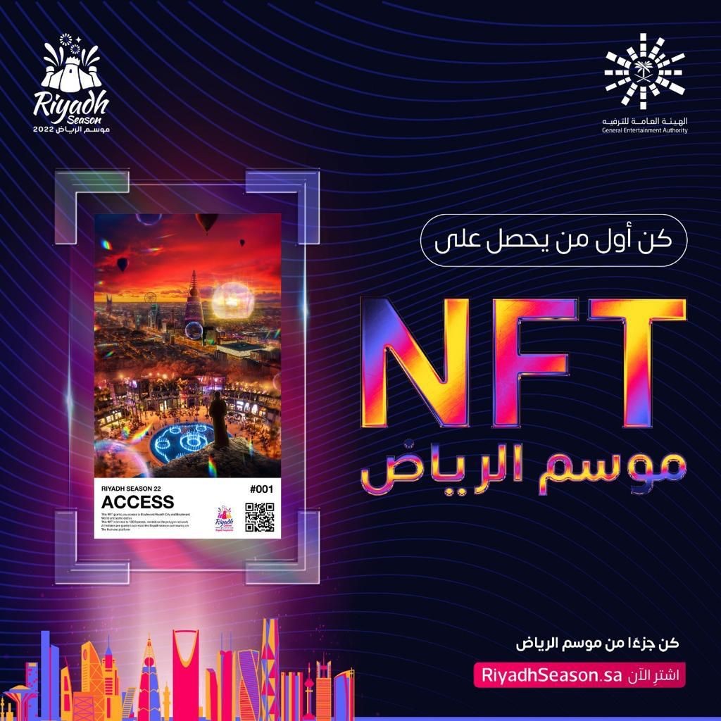 يقدم موسم الرياض 2022 لزواره تجربة فريدة بطريقة مبتكرة وحديثة، تتمثل في استخدام تقنية الـNFT عن طريق إطلاقها بطاقة أكسس التي تمكّن حامليها من دخول مناطق الموسم الترفيهية وحضور فعالياته المتنوعة، التي تشمل الألعاب الإلكترونية والمهرجانات والمسرحيات السعودية والعربية، والحفلات الغنائية، والمعارض المحلية والعالمية.