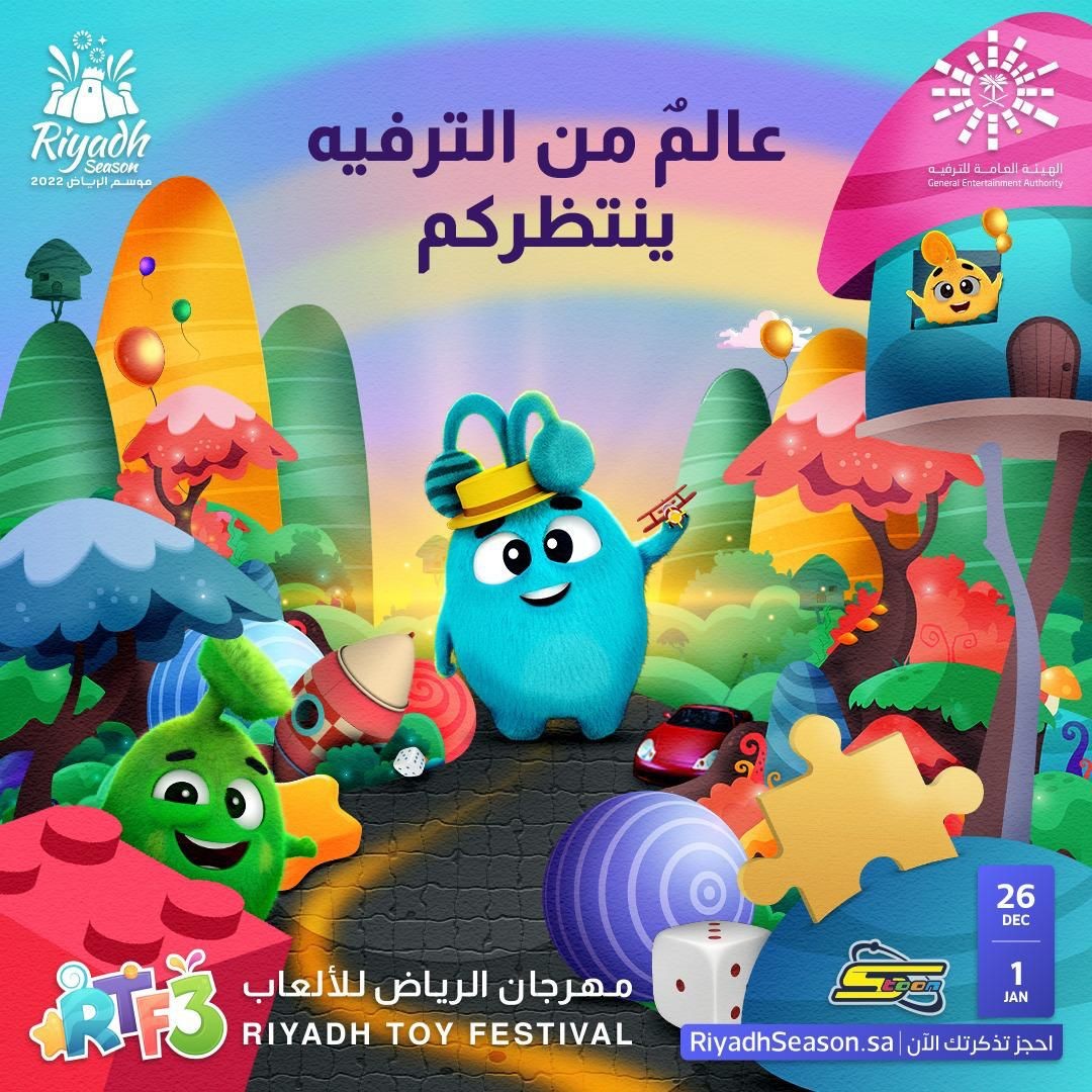 ومن المقرر أن يستقبل المرجان زواره يوميًا من الساعة الرابعة عصرًا حتى الثانية عشرة مساءً خلال أيام الأسبوع، وفي أيام عطلة نهاية الأسبوع حتى الساعة الواحدة بعد منتصف الليل، ويمكن حجز تذاكر الدخول عبر الرابط التالي: https://riyadhseason.sa/event-details.html?id=601/ar_Riyadh_Toy_Festival.
