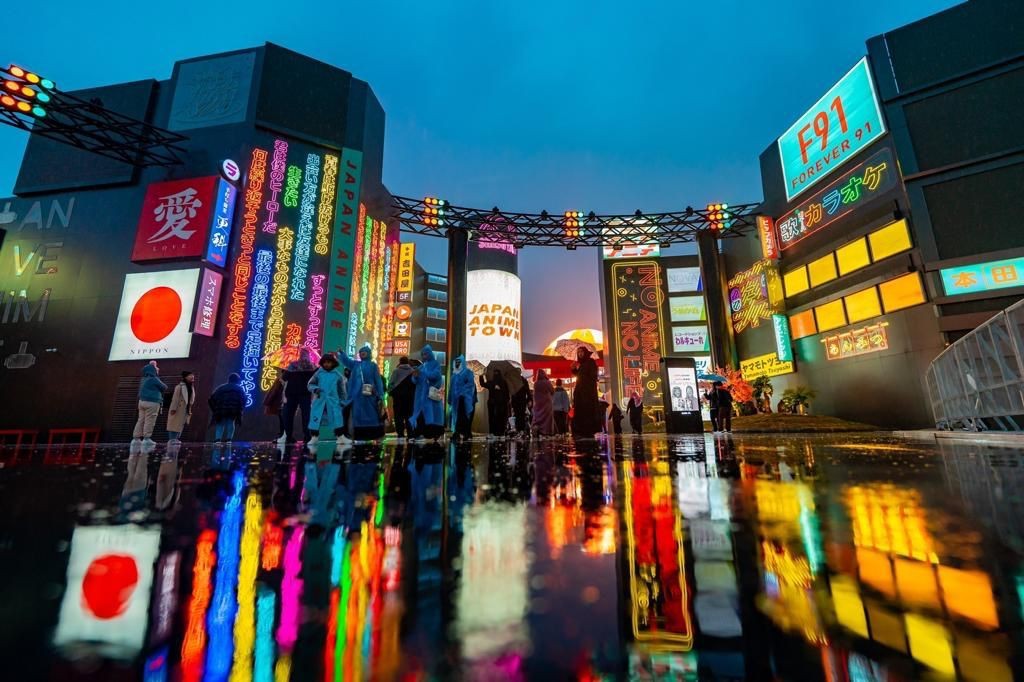 أمطار الرياض تعانق قوس النصر وتسقي أشجار المكسيك وتعكس إضاءات اليابان في "بوليفارد وورلد"