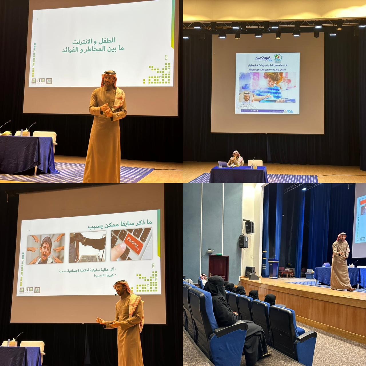 إنطلقت ورشة عمل بعنوان ( الطفل والإنترنت )مابين المخاطر والفوائد التي نضمتها مدرسة دوحة المعرفة بالتعاون مع غرفة أبها ،وقدمها الدكتور -حامد القحطاني أستاذ مساعد في كلية الحاسب الآلي ،والمشرف العام على الإدارة العامة لتقنية المعلومات