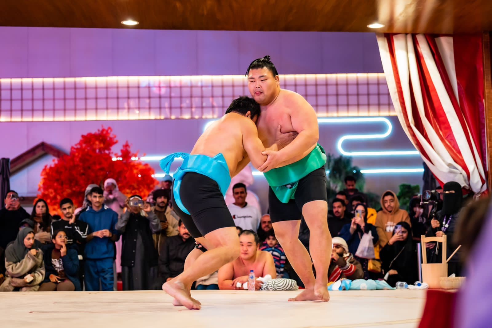 استضافت منطقة آنمي تاون اليابان في بوليفارد وورلد يوم الجمعة 13 يناير، عمالقة رياضة السومو اليابانية، ضمن فعاليات موسم الرياض 2022، في لقاء اتسم بالتنافسية والحماس، حرص فيه كل مصارع على كسب الجولة لصالحه.