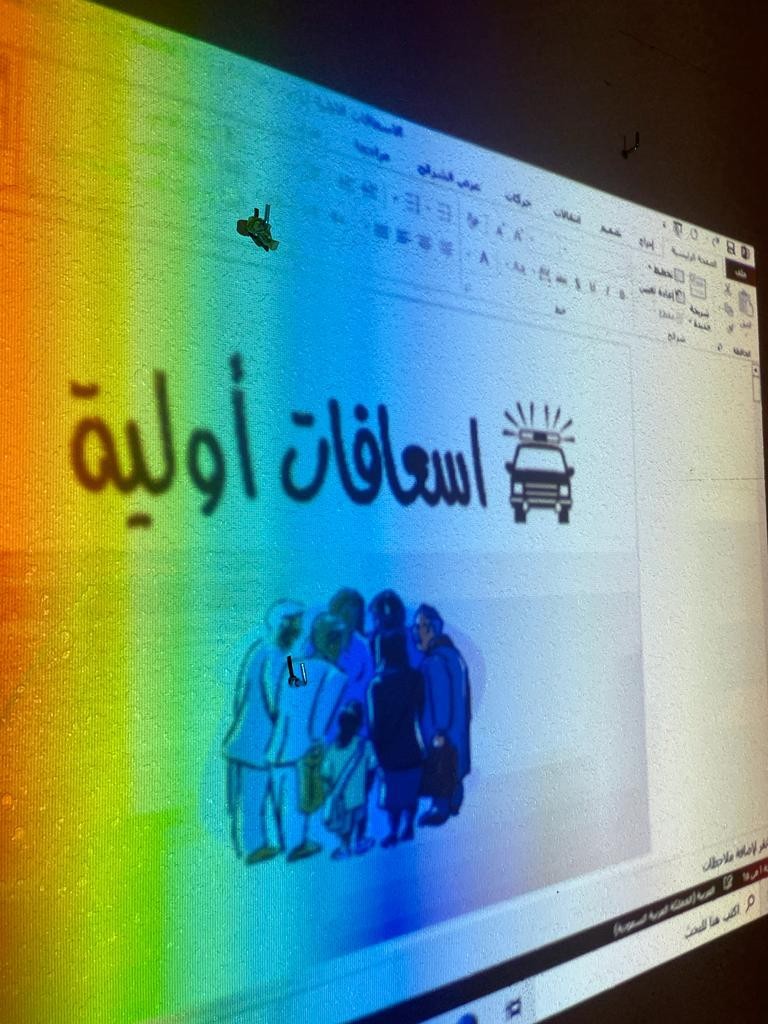 اقام مركز التنمية الاجتماعية بمحافظة القريات ورشة عن الاسعافات الاولية لموظفات القسم النساىي بمقر المركز قدمتها الممرضة / وضحاء محمد العنزي تناولت فيها الحديث عن الطريقه الصحيحه لايقاف النزيف وكيفية انقاذ مريض اصيب بصعوبه بالتنفس او فقدان بالوعي بالاضافه الي الحديث عن انواع الجروح  وكيفية طرق علاجها .