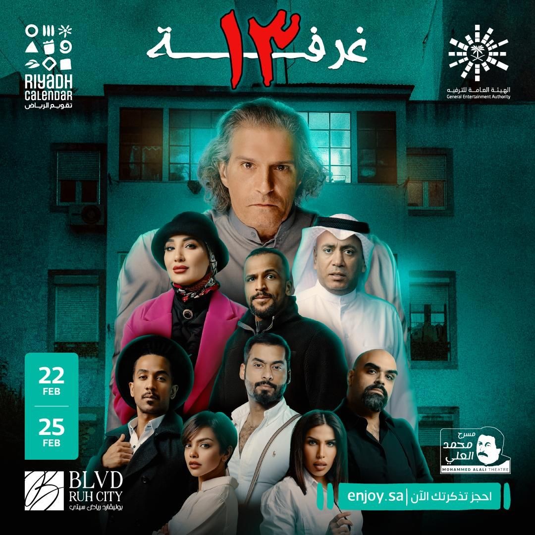 المملكة العربية السعودية، 18 فبراير 2023: تنطلق في 22 فبراير الجاري عروض مسرحية "غرفة 13" على مسرح محمد العلي في منطقة بوليفارد رياض سيتي ضمن فعاليات تقويم الرياض، بمشاركة مجموعة من نجوم الفن والمسرح، وتستمر عروض المسرحية يوميًّا حتى 25 فبراير.