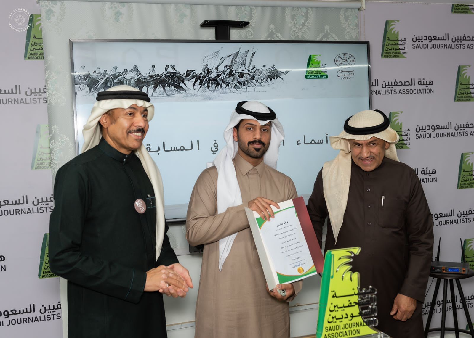 أعلن فرع هيئة الصحفيين السعوديين بالأحساء،عن  اسماء الفائزين في المنافسة الوطنية فيلم ( يوم التأسيس السعودي) والتي تتحدث عن يوم التأسيس باعتباره مناسبة وطنية تهدف إلى استذكار هذا اليوم التاريخي وهو يوم تأسيس الدولة السعودية الأولى .