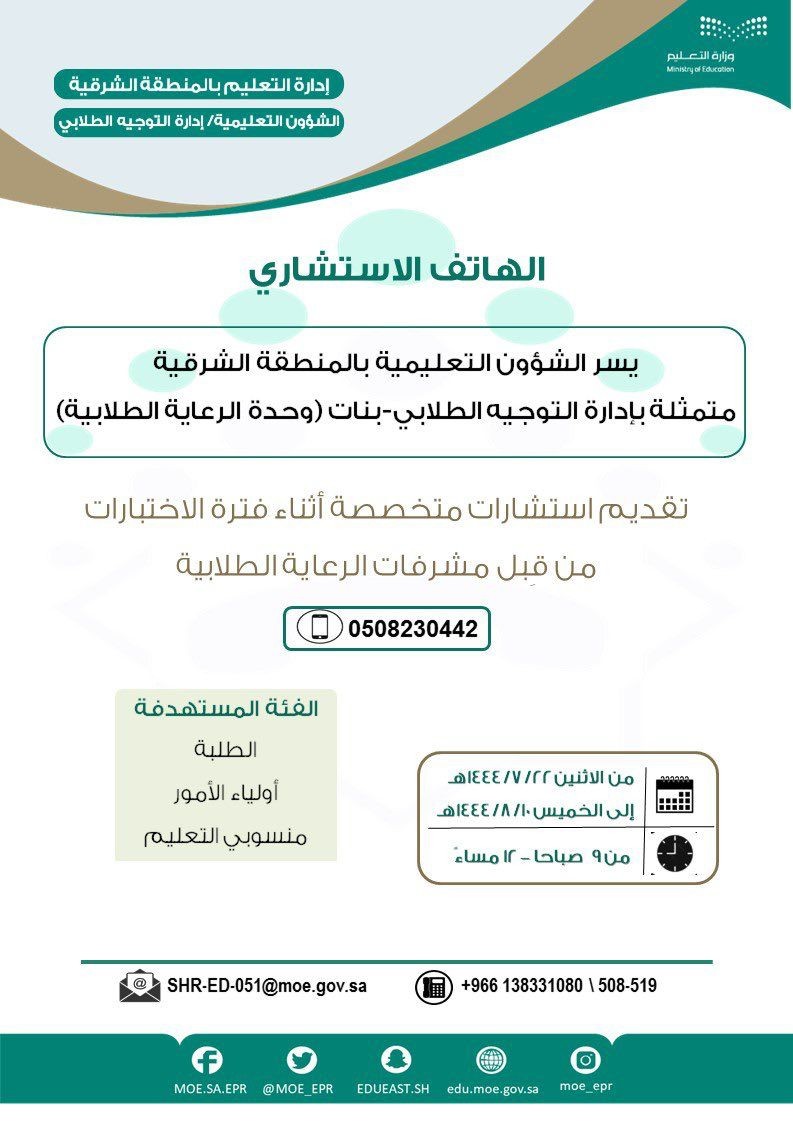 "أسألني "بتعليم الشرقية ...6000 استشارة عبر الهاتف الاستشاري