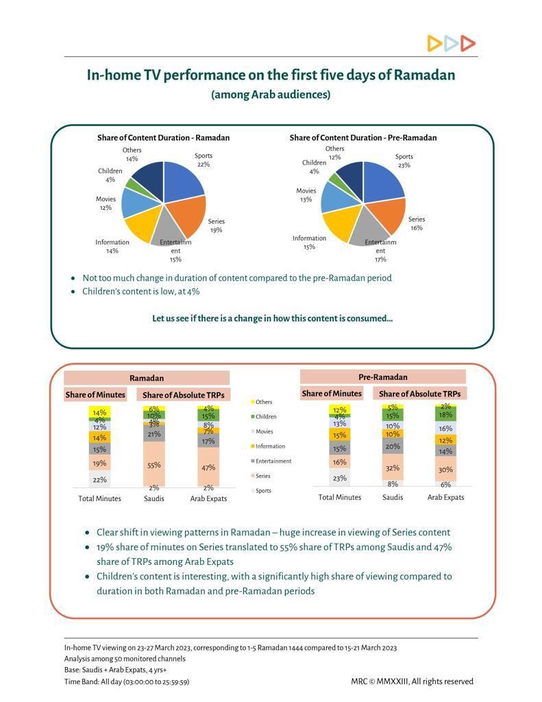 أطلقت شركة التصنيف الإعلامية (MRC) بيانات المشاهدة التلفزيونية خلال شهر رمضان المبارك في المملكة العربية السعودية، والتي تم جمعها خلال الأيام الخمسة الأولى من الشهر الفضيل بدقة وموضوعية عالية، وهي عبارة عن معلومات تُشير إلى نسب مشاهدة الجمهور للبرامج والمسلسلات الرمضانية؛ والتي من شأنها مساعدة المعلنين من التخطيط لحملاتهم الإعلانية بشكل ناجح، وفقًا للشرائح المُستهدفة والبرامج الأعلى مشاهدة، الأمر الذي لاقى استحسانًا من جميع الشركات المستخدمة للبيانات؛ نظرًا لشموليتها وجودتها.