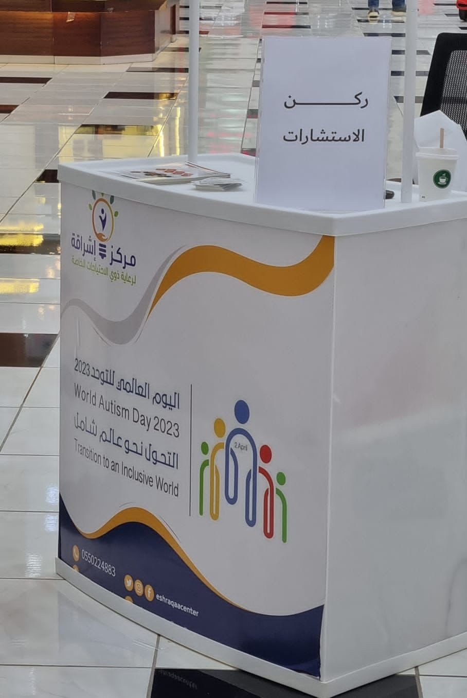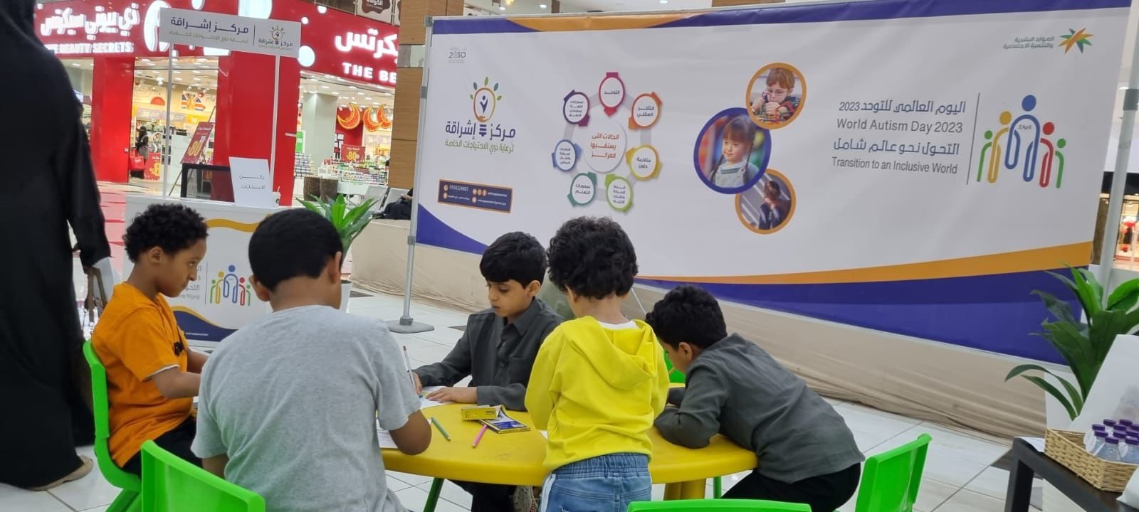 احتفى مركز إشراقة لرعاية ذوي الاحتياجات الخاصة بمحايل عسير مساء الاحد باليوم العالمي للتوحد2023 تحت شعار " التحول نحو عالم شامل " بحضور أسر اطفال التوحد وعدد من المهتمين وذلك بالبساتين مول.