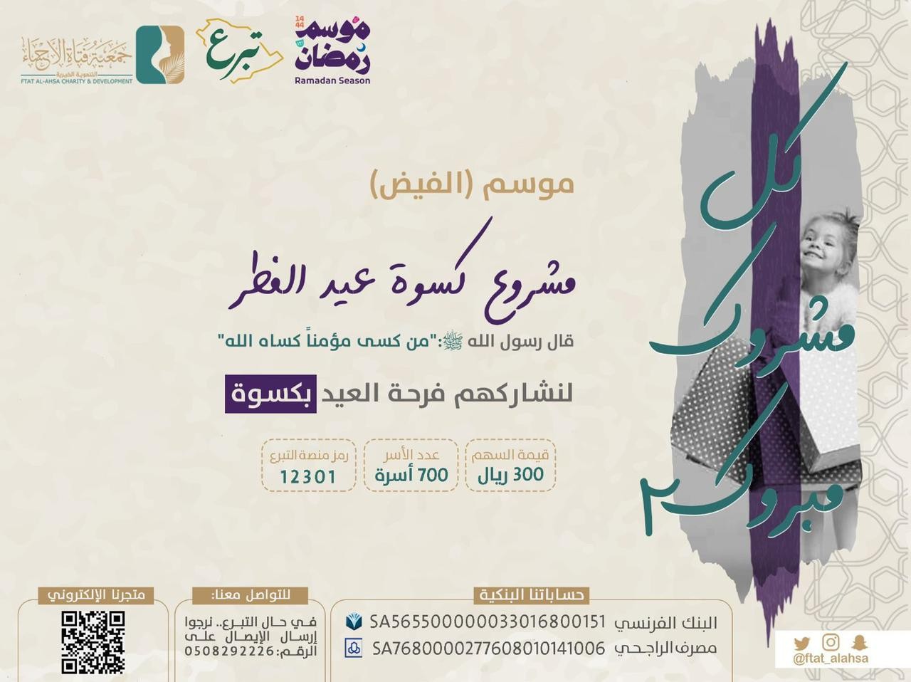 "فتاة الاحساء "تطلق مشروع كسوة العيد