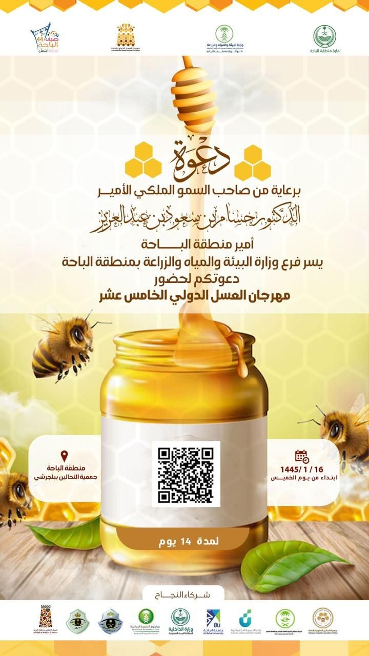 تنطلق غدا الخميس الموافق 3 أغسطس الجاري، فعاليات مهرجان العسل الدولي الخامس عشر، تحت رعاية سمو الأمير الدكتور حسام بن سعود بن عبدالعزيز، أمير منطقة الباحة، وذلك بمقر جمعية النحالين التعاونية بمحافظة بلجرشي.