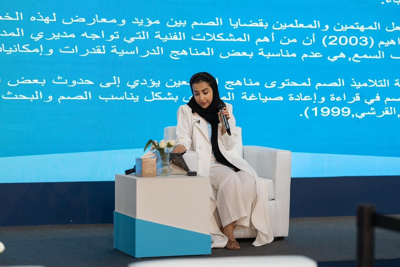 وقالت العمر: "إن المتأمل في مناهج المملكة العربية السعودية يدرك تمامًا كمية المعارف والقيم التي تُزود للطلاب، والتي تستند على نظريات التعلم المختلفة، سواء كانت معرفية أم سلوكية أم وفقًا للمنهج البنائي، وذلك يحتم على معلمي التربية الخاصة عمومًا ومعلمي الصم وضعاف السمع خصوصًا، الإلمام بأسس المنهج وتصميمه لمعرفة آلية التكييف التي تناسب المحتوى والمرحلة العمرية".