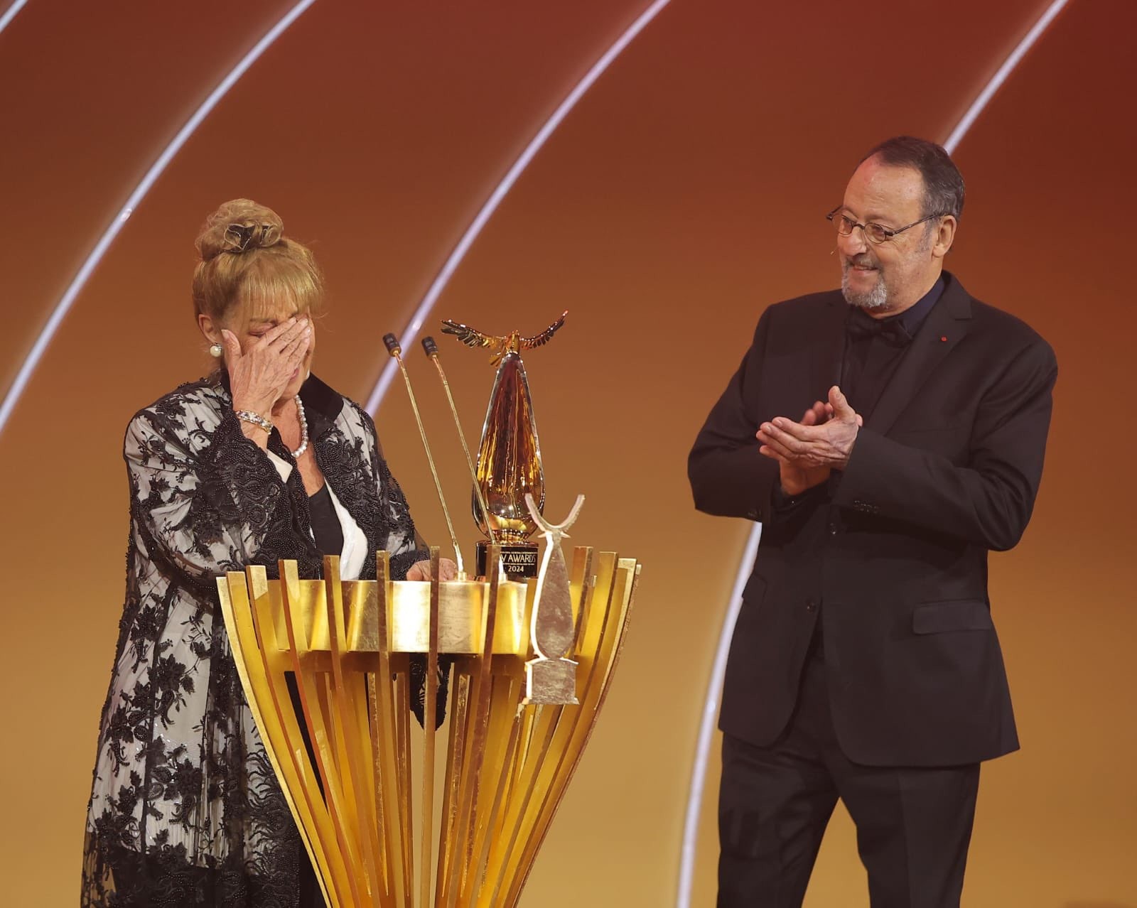 وفي هذا المقام أوجزت الممثلة القديرة "منى واصف" التي وصفت "أم الدراما السورية" في حديثها أثناء تسلمها الجائزة عن مسيرتها الحافلة في الدراما العربية وأعينها تفيض بالدموع على خشبة المسرح معبرة عن مدى إعرابها وسعادتها وإحساسه الجميل تجاه أعمالها الفنية التي قدمتها، وأردفت لو كان ذلك الأثر قليلا من الابتسامة الذي صنعته لمحبي الدراما شكرا، مقدمه جزيل شكرها للقائمين على هذه الجائزة القيمة، ومن ناحيته قال الممثل القدير "علي المدفع" أشكر خادم الحرمين الشريفين الملك سلمان وولي عهده الأمين الأمير محمد بن سلمان -حفظهما الله- ومعالي المستشار تركي آل الشيخ، وأضاف الحمدلله أنني ساهمت مع زملائي أن أصل إلى ما وصلت إليه مختتما حديثه بجملة "الحمدلله أنني سعودي".