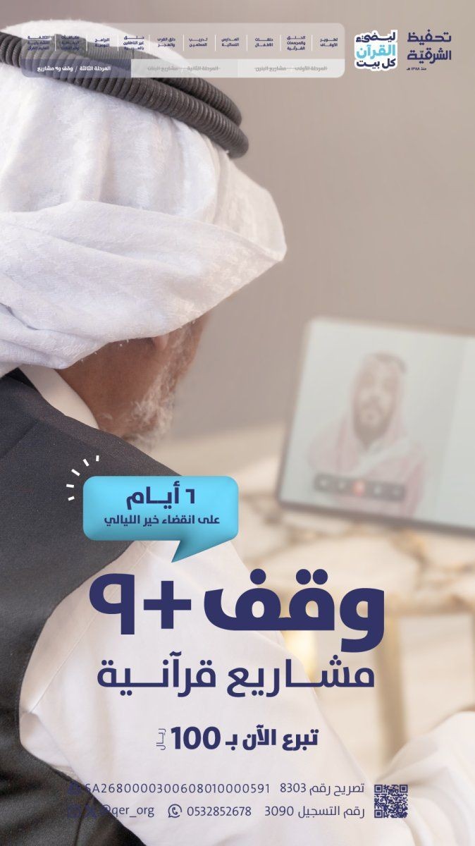 أطلقت جمعية تحفيظ القرآن الكريم بالمنطقة الشرقية، المرحلة الثالثة من برنامج ( سفير القرآن )، ليضيء القرآن كل بيت،ودعم تعليم القرآن الكريم ، داعية أهل الخير للمساهمة بدعم البرنامج ليكونوا جزءًا من الرحلة والسباق إلى العتق والأجر، بعشرة أبواب للخير وهي وقف وتسعة مشاريع قرآنية.