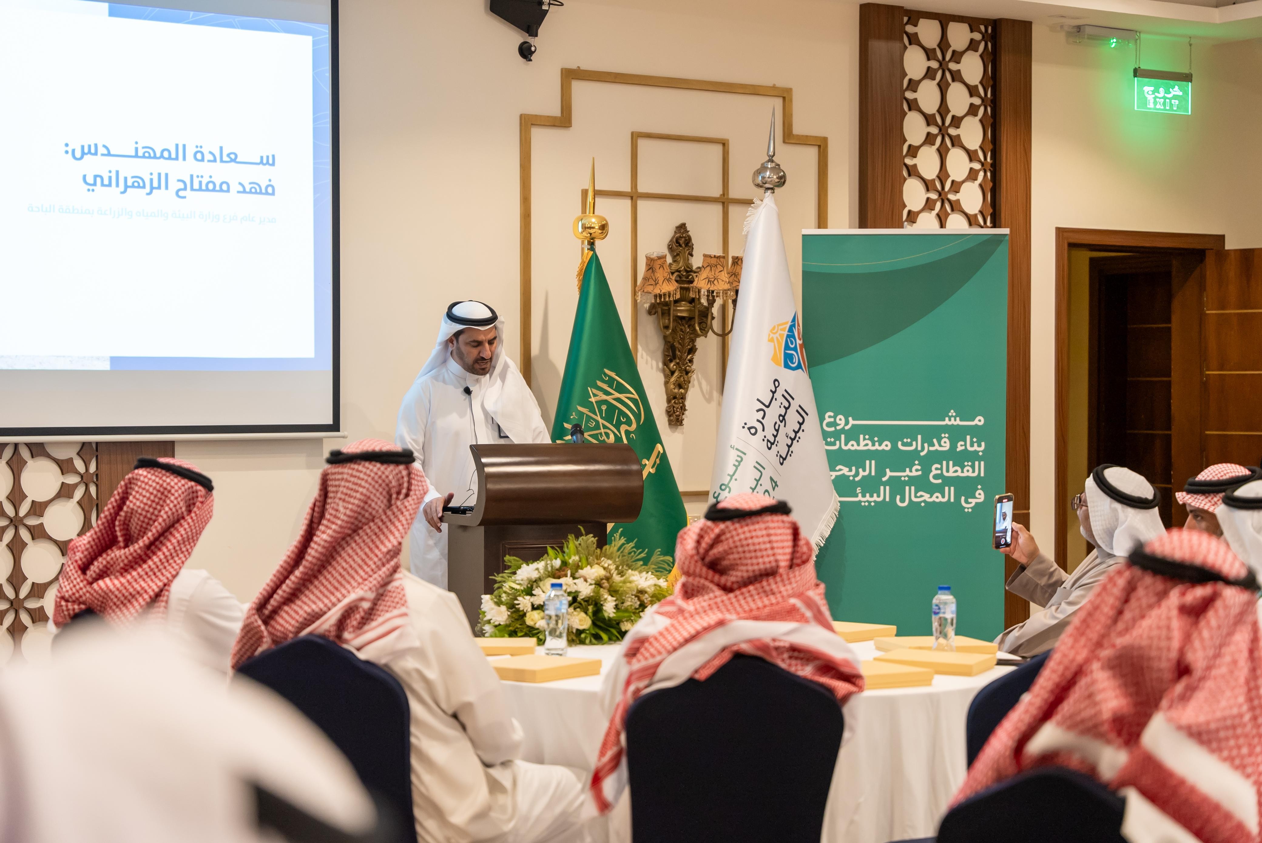 وأفاد سعادة مدير عام فرع وزارة البيئة والمياه والزراعة بمنطقة الباحة المهندس فهد مفتاح الزهراني بأن مثل هذه الورش  تهدف إلى تحفيز الشراكة المجتمعية مع القطاع البيئي الغير ربحي ، والإسهام في تطوير القطاع البيئي منطقة الباحة والمحافظات والمراكز التابعه لها.