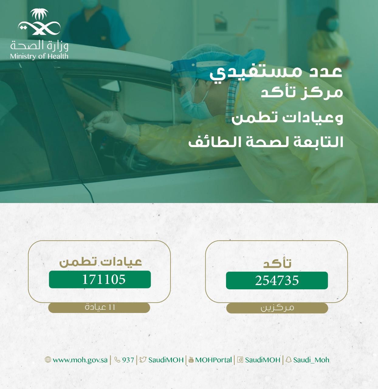 صحة الطائف أكثر من 400 الف مستفيد من خدمات عيادات (تطمن) ومراكز (تأكد)