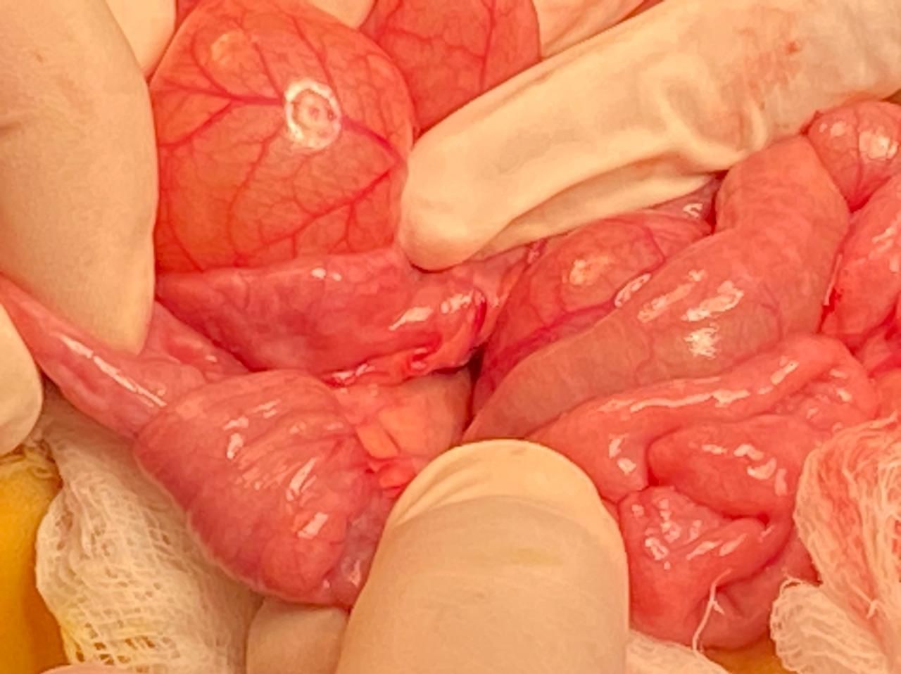 وتم إزالت الجزء المتضرر من الأمعاء بإستئصال لم يتجاوز ٤سم لوقف النزيف .ومكثت الطفلة عدة أيام للملاحظه وخرجت بصحة وعافيه  ولله الحمد .