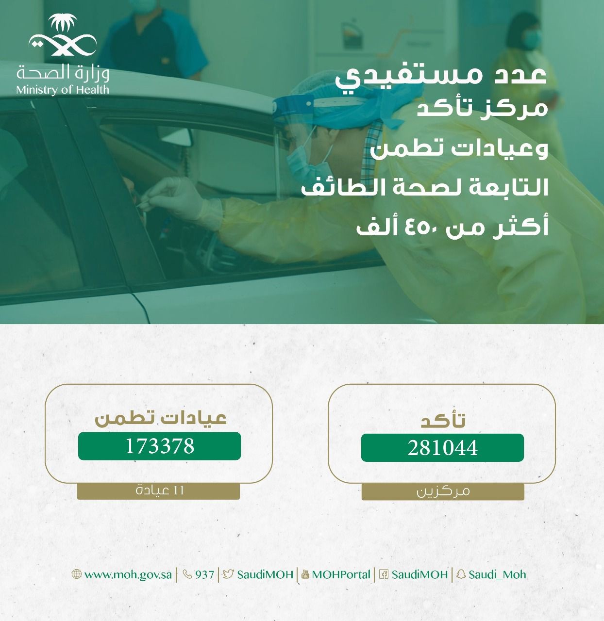 450الف فحص لـ "كورونا" بالطائف عبر مراكز"تطمن" و"تأكد"