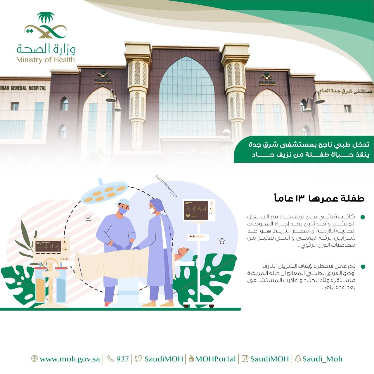 تدخل طبي ناجح بمستشفى شرق جدة ينقذ حياة طفلة من نزيف حاد