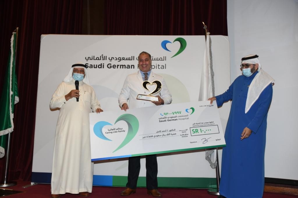 كما تم تقديم الجوائز التقديرية لموظفي "السعودي الألماني الصحية"، ومن ضمنها "جائزة الرعاية" التي منُحت تكريماً للموظفين المتفانين في رعاية المرضى كفرد من أفراد الأسرة الواحدة