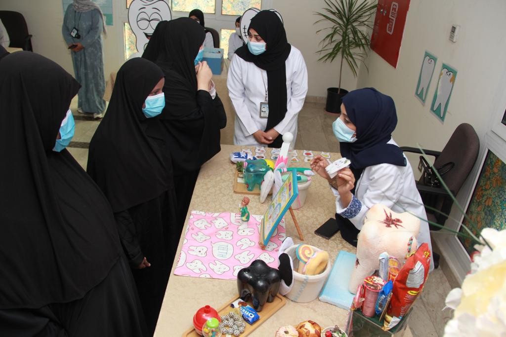 ثم تجول المستفيدات في أركان البرنامج التوعوية الصحية والأنشطة الهادفة التي تعزز أهمية العناية بالأسنان وطرق المحافظة عليها والتغذية السليمة لصحة الفم والأسنان.