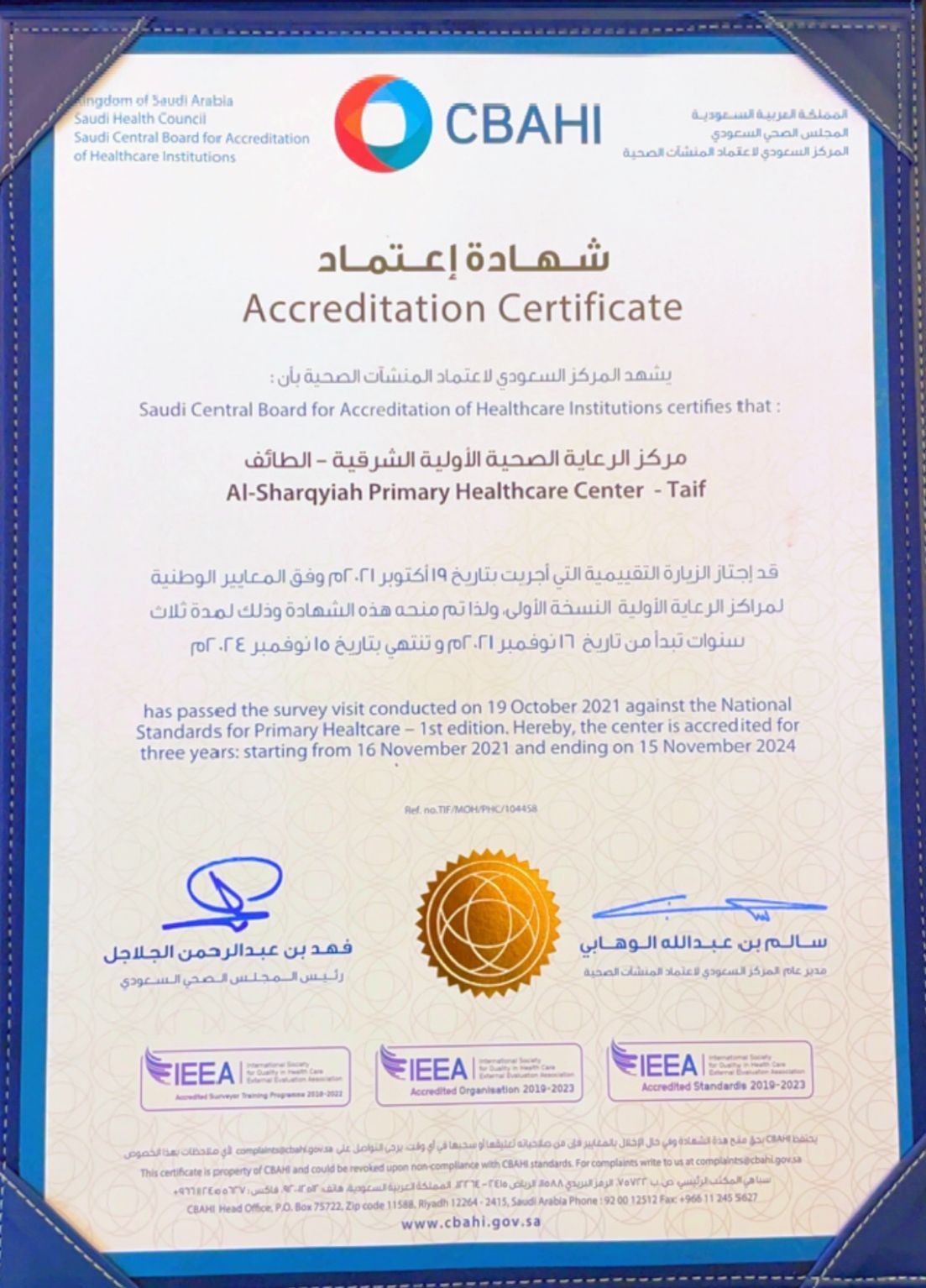 أوضحت "صحة الطائف" أن عدد 22 منشأة صحية حققت شهادة اعتماد "سباهي" والصادر عن المركز السعودي لاعتماد المنشآت الصحية، وذلك بعد خضوعها للتقييم وتوفير اشتراطات السلامة، وتطبيق أعلى معايير الجودة عند تقديم الخدمات الصحية للمرضى.