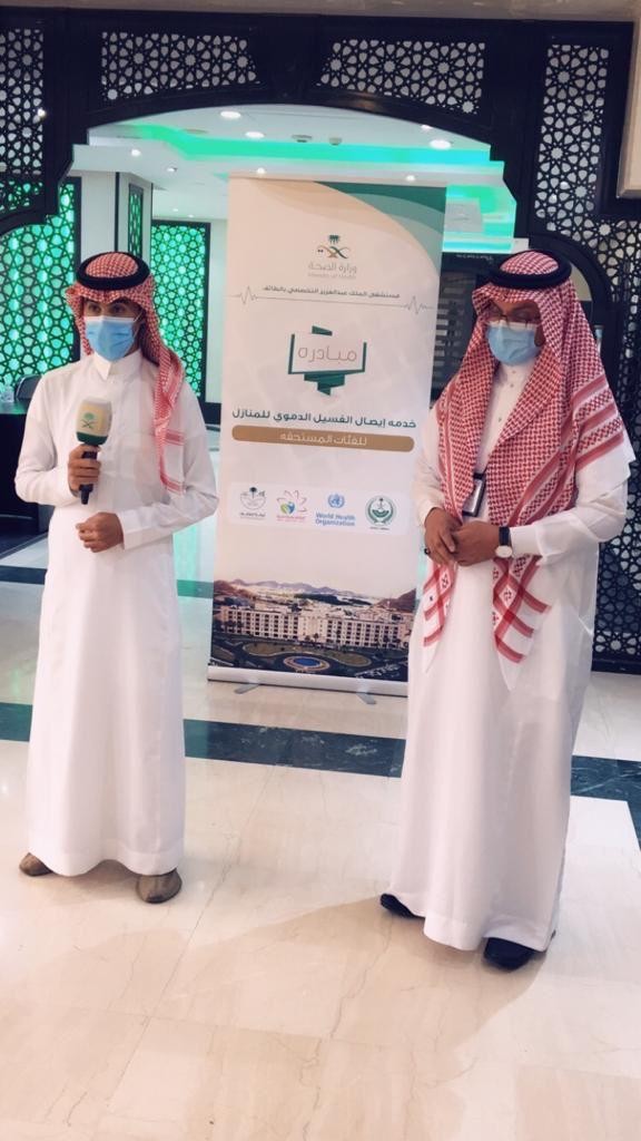 دشن مدير  مستشفى  الملك عبدالعزيز التخصصي بالطائف الدكتور خالد الشريف بحضور مساعد منسق برنامج مدينة  الطائف الصحية أ:خالد  الحارثي وبحضور مساعد مدير المستشفى  العلاجي الدكتور ماجد الحارثي والمدير الطبي الدكتور صالح الثبيتي ورئيس أقسام الكلى الدكتور أحمد الزايدي مبادرة إيصال الغسيل الكلوي الدموي إلى منازل بعض فئات المرضى المحتاجين لهذه الخدمة من خلال تدشين جهازين وفريقي عمل.