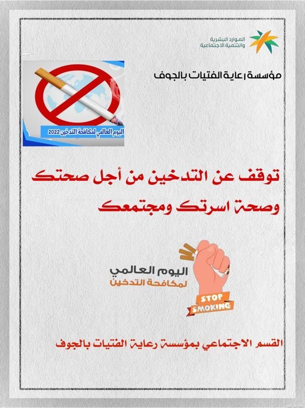 قامت مؤسسة رعاية الفتيات بالجوف بتفعيل اليوم العالمي للتدخين يوم الثلاثاء الموافق ١٤٤٣/١١/٢هـ