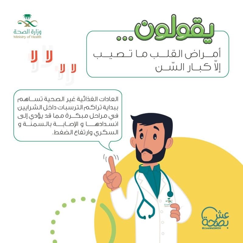 وقالت المنصة الرئيسية للتوعية الصحية بوزارة الصحة “عش بصحة”، إن العادات الغذائية غير السليمة تساهم في بدء تراكم الترسبات داخل الشرايين في مراحل مبكرة.