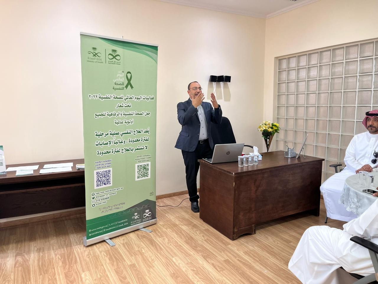 فعلت دار الرعاية الإجتماعية للمسنين بمنطقة حائل في يوم الإربعاء الموافق ١٤٤٤/٣/١٦هـ  وفي تمام الساعة العاشرة صباحاً اليوم العالمي للصحة النفسية تحت شعار ((جعل الصحة النفسية والرفاهية للجميع أولوية عالمية )) وذلك بالتعاون مع مجمع إرادة للصحة النفسية بحائل .