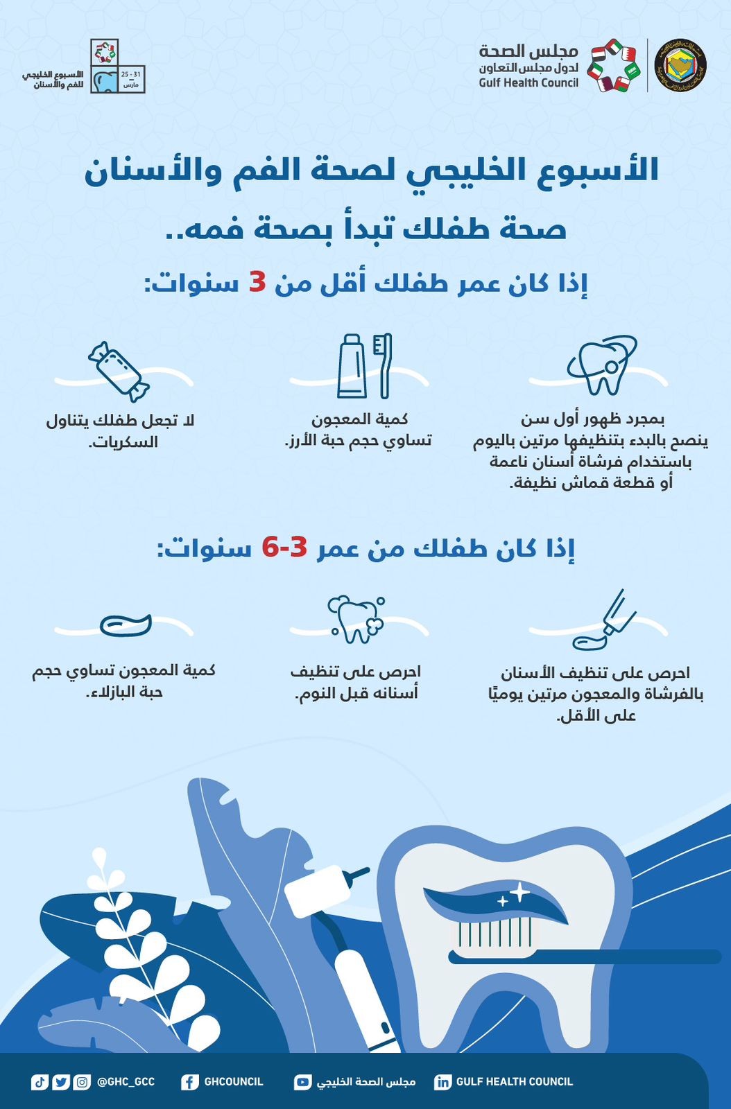 مجلس الصحة الخليجي يوضح الفرق بين فرش الأسنان ومتى يبدأ الأطفال