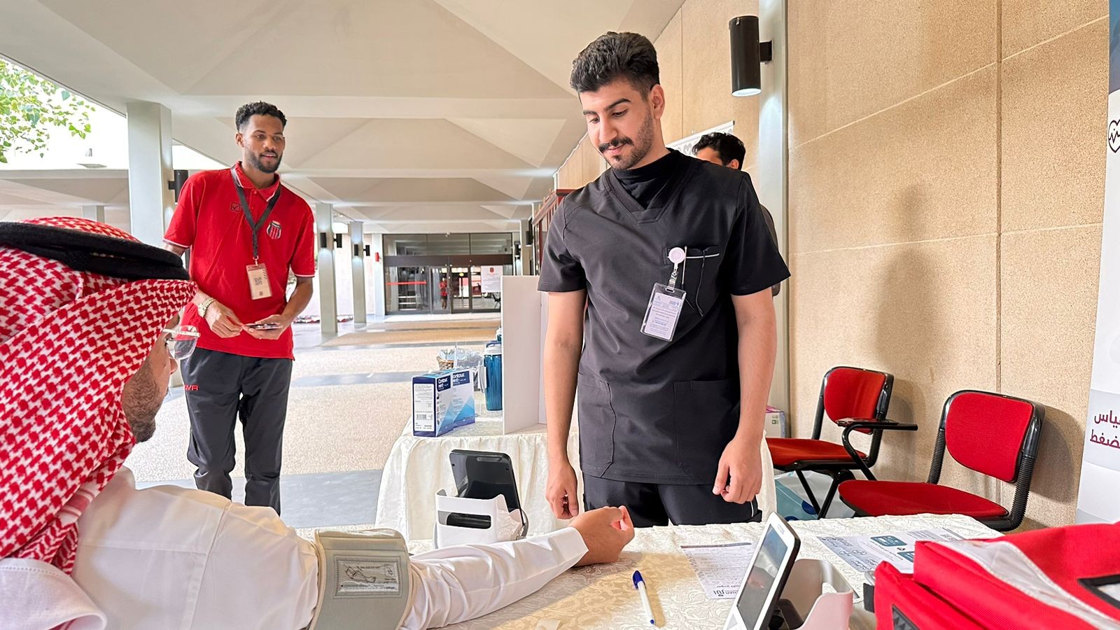 وذلك بالكشف المجاني لزوار النادي وفحص العلامات الحيوية، وتهدف الفعالية للكشف عن حالات الإيجابية وعلاجها مبكراً ، وتقديم الخدمات للزوار بتحليل السكر وقياس الضغط .