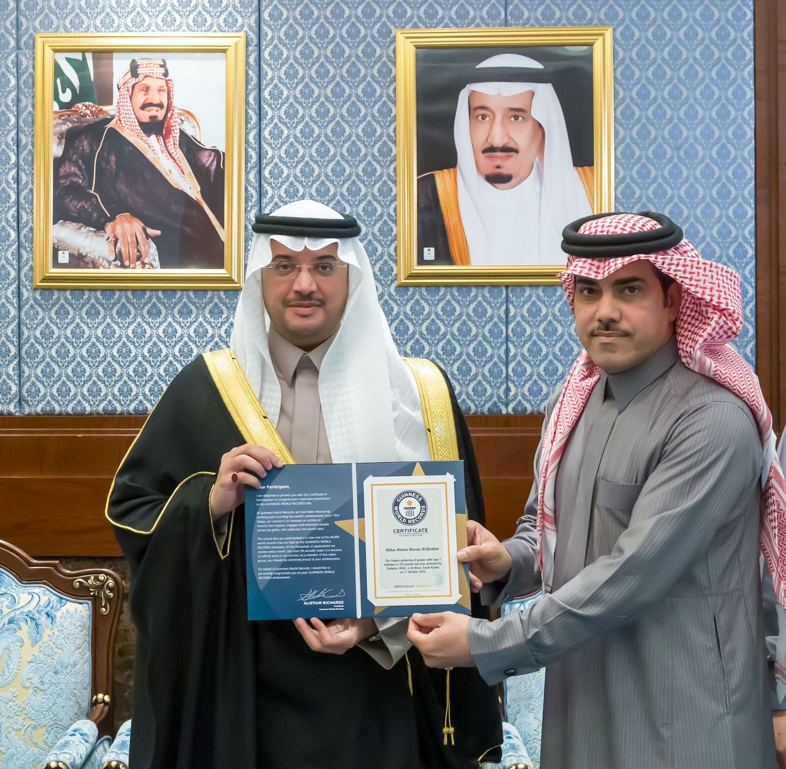 وكان معالي وزير الصحة فهد بن عبدالرحمن الجلاجل, تسلم شهادة موسوعة جينيس للأرقام القياسية العالمية، بعد أن حقق مركز ديابيتر بالأحساء المتخصص في علاج مرضى السكري من النوع الأول الرقم القياسي، عن تواجد أكبر تجمع بشري بالعالم في وقت واحد لتوعية وتثقيف مرضى السكري بعدد بلغ 752 مستفيدًا.