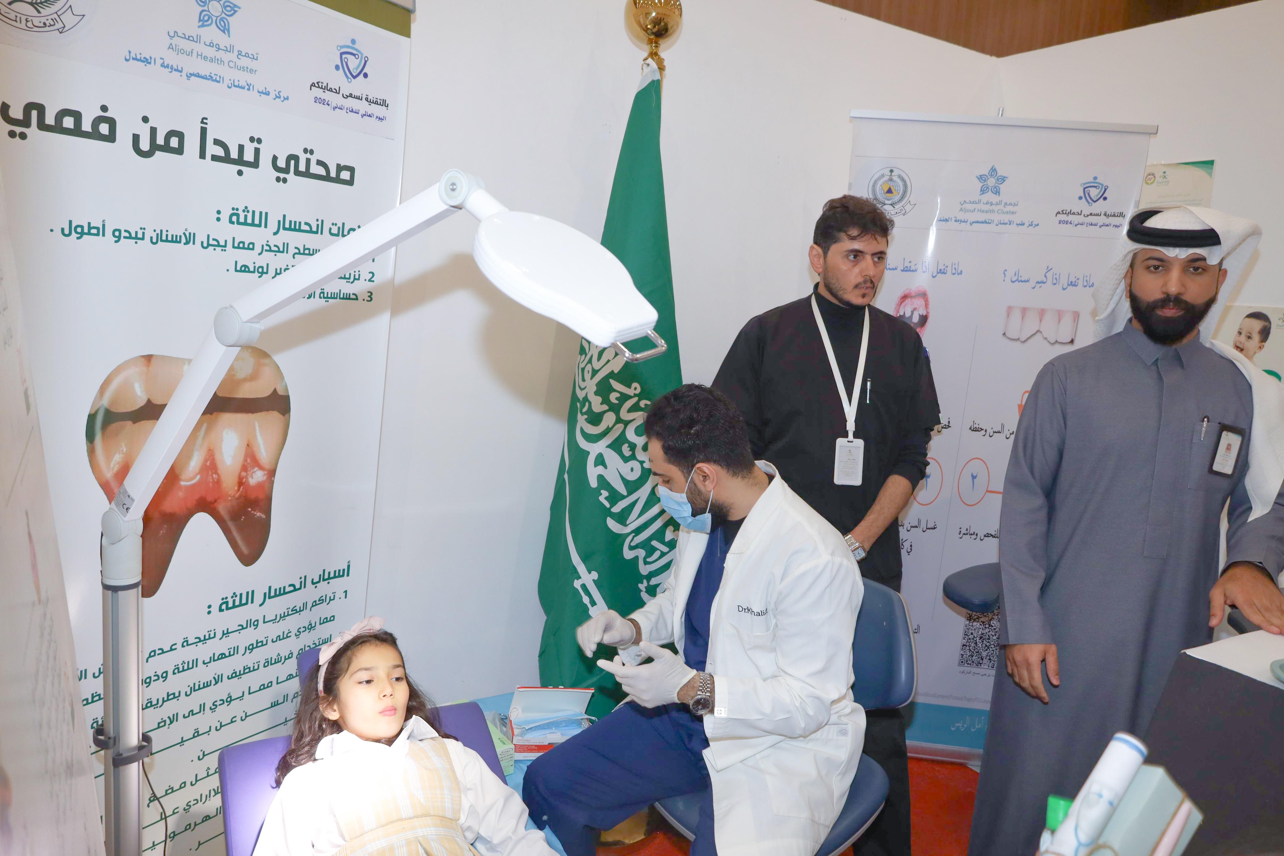 طب الأسنان بمحافظة دومة الجندل يشارك في فعاليات اليوم العالمي للدفاع المدني