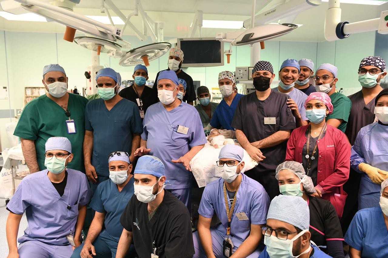 الدكتور الربيعة يعلن نجاح عملية فصل التوأم الطفيلي اليمني عائشة