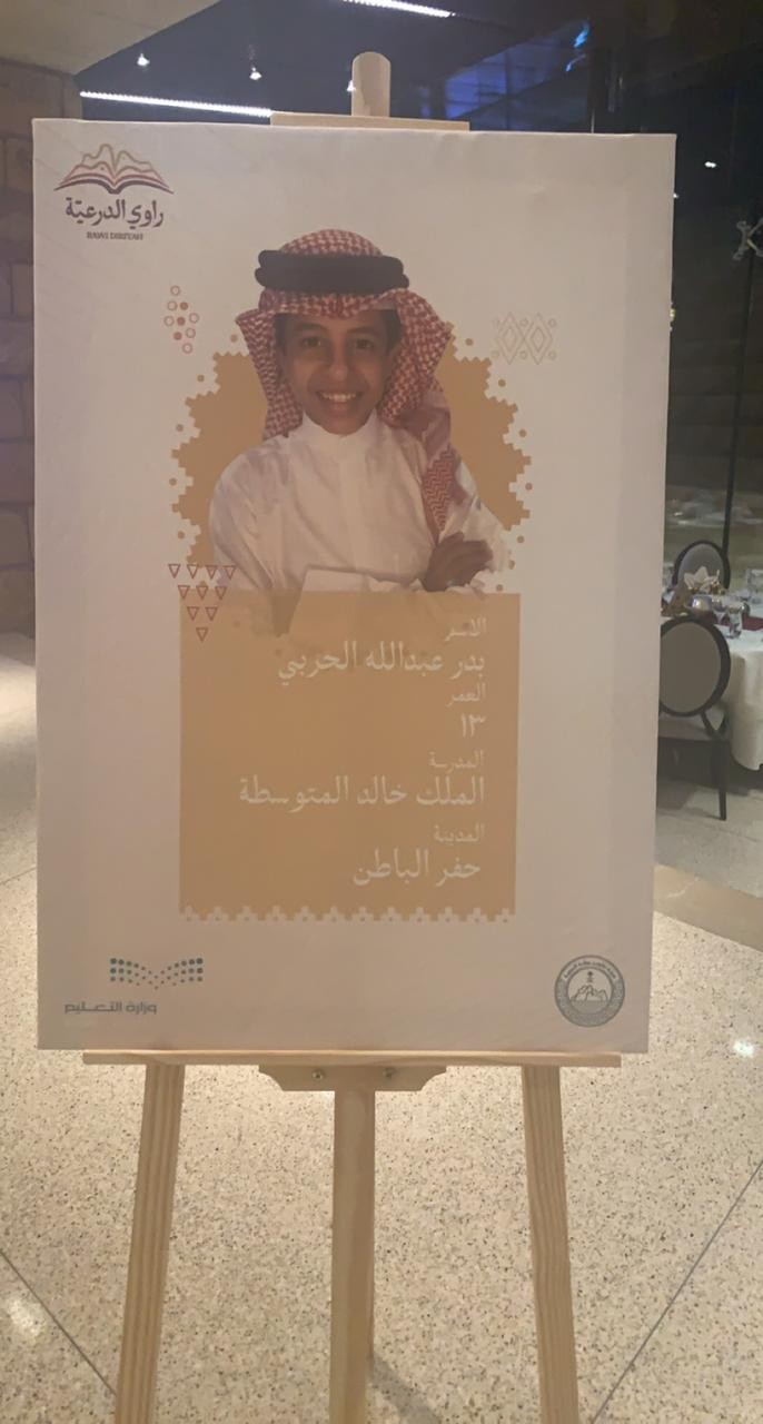 الطالب بدر الحربي يفوز بمسابقة راوي الدرعية