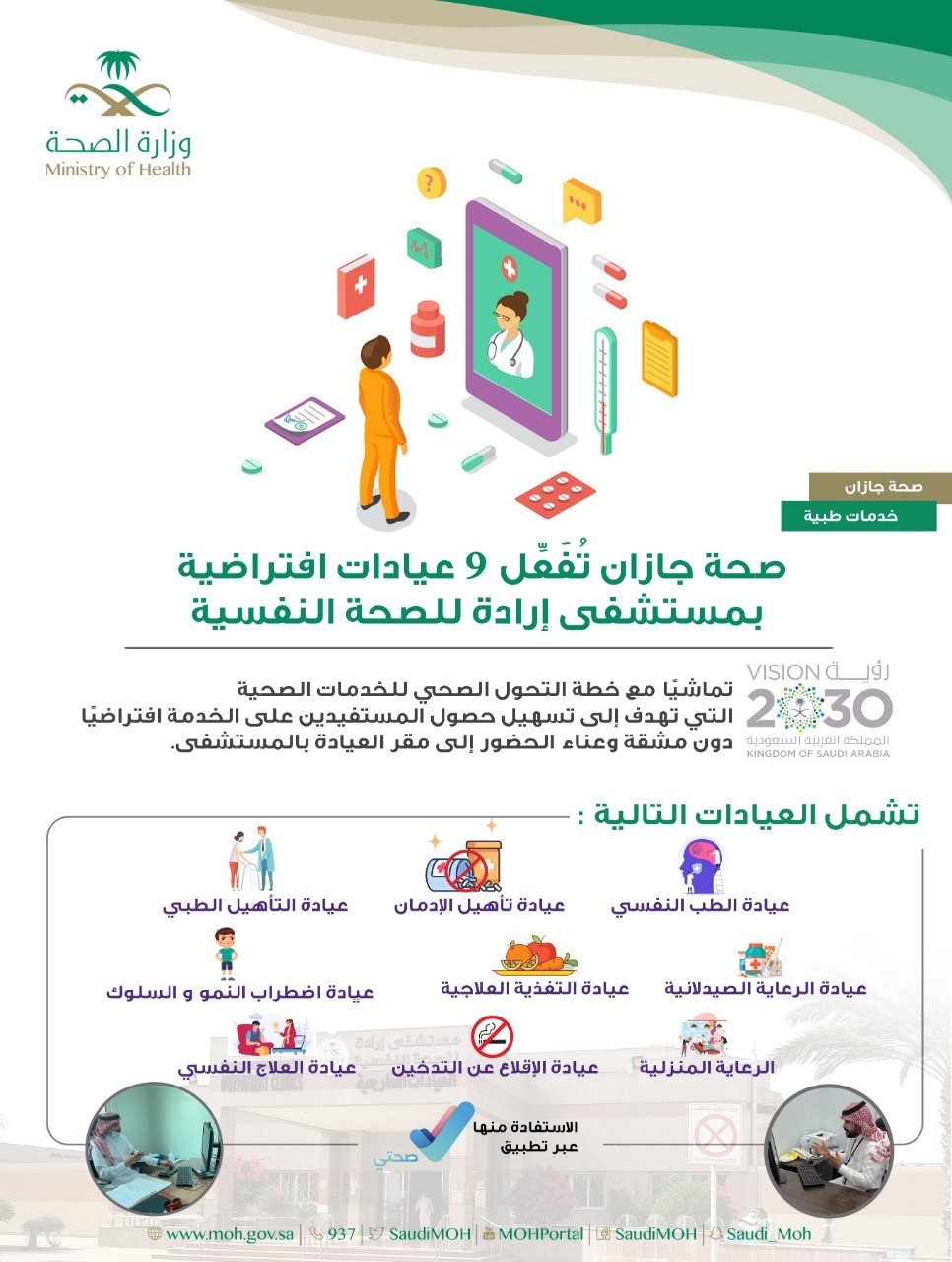 صحة جازان تفعل 9 عيادات افتراضية بمستشفى إرادة للصحة النفسية