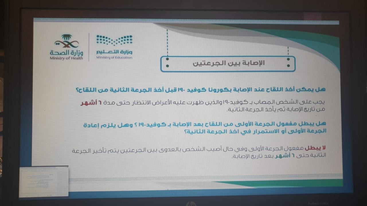نفذت الإدارة العامة للتعليم بمنطقة مكة المكرمة ممثلة في إدارة الشؤون الصحية المدرسية بتعليم مكة المكرمة، لقاءً تدريبياً بعنوان ( الأساليب الوقائية للعودة إلى المدارس في ظل جائحة كورونا)، اليوم الثلاثاء الموافق 16 / 1 / 1443هـ، والمنفذ بإدارة التدريب والابتعاث بالمركز الثاني، من قبل مساعدة مدير الشؤون الصحية المدرسية رضية الخطابي و مشرفات الشؤون الصحية المدرسية إبتهاج المنيعي، حنان نمنكاني، وبحضور(107) متدربة من منسوبات إدارة التعليم ومكاتب التعليم والمدارس، بهدف التوعية باتخاذ التدابير الوقائية والاحترازية للعودة للمدارس، مع وضع إرشادات وأدلة تساعد على الحد من تفشي العدوى بشكل عام وفيروس كورونا بشكل خاص .